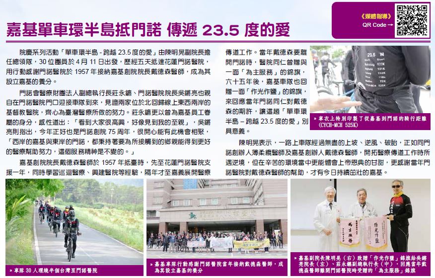 院慶系列活動「單車環半島- 跨越23.5 度的愛」由陳明晃副院長擔