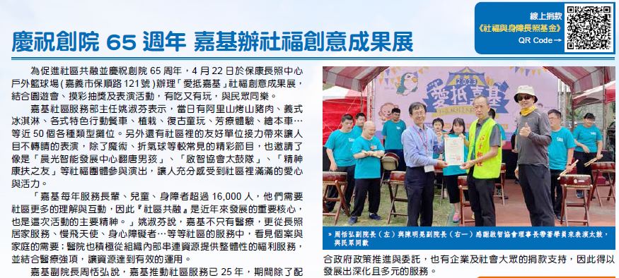 慶祝創院65 週年 嘉基辦社福創意成果展