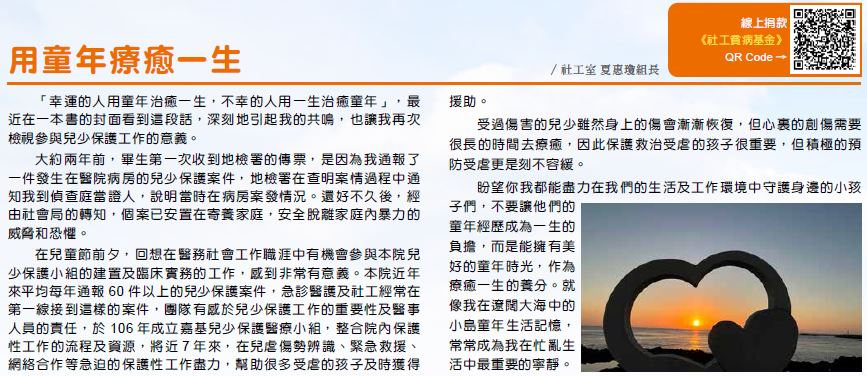 在兒童節前夕,回想在醫務社會工作職涯中有機會參與本院兒