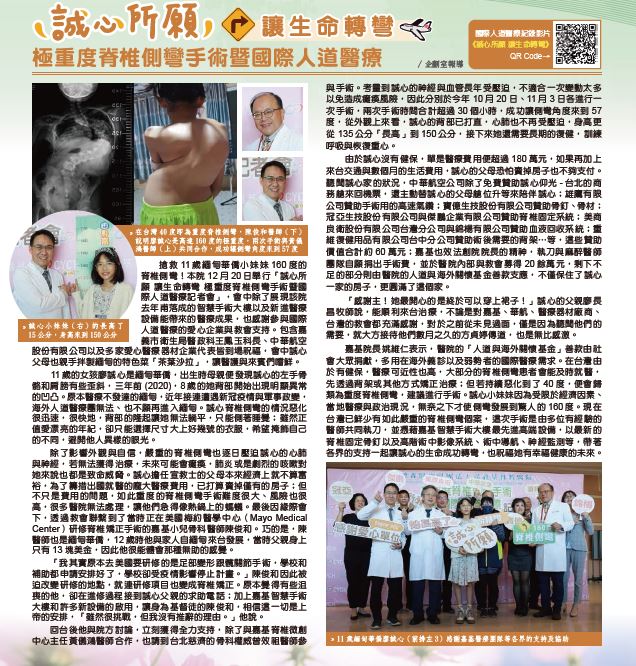 極重度脊椎側彎手術暨國際人道醫療