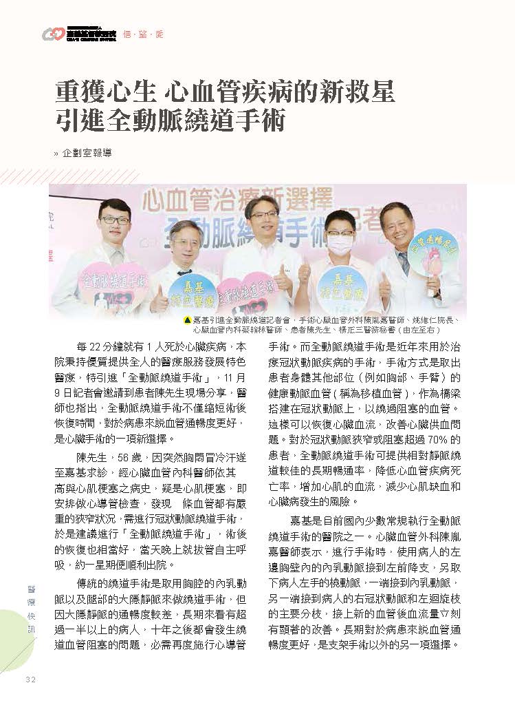 重獲心生 心血管疾病的新救星 嘉基引進全動脈繞道手術