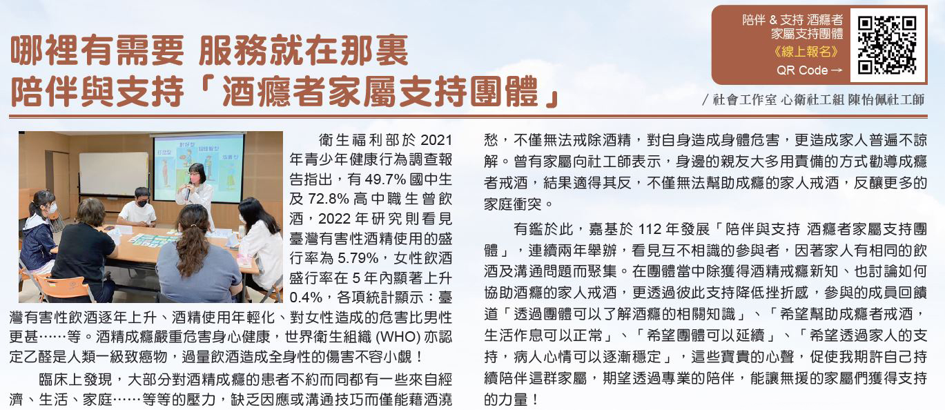 哪裡有需要 服務就在那裏∞陪伴與支持∞「酒癮者家屬支持團體」