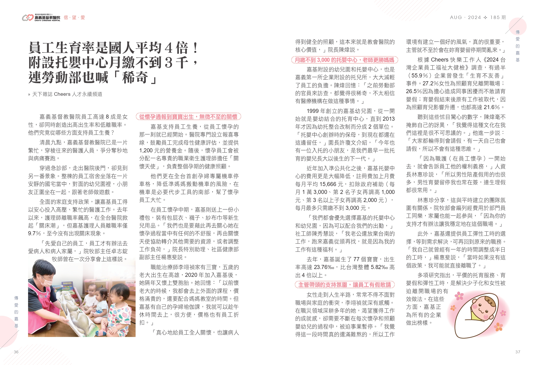 嘉義基督教醫院員工高達8成是女性,卻同時創造出高出生率和低離職率。他們究竟從哪些方面支持員工生養?