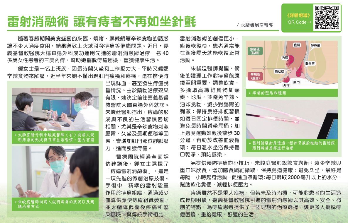 嘉基 雷射消融術 讓有痔者不再如坐針氈