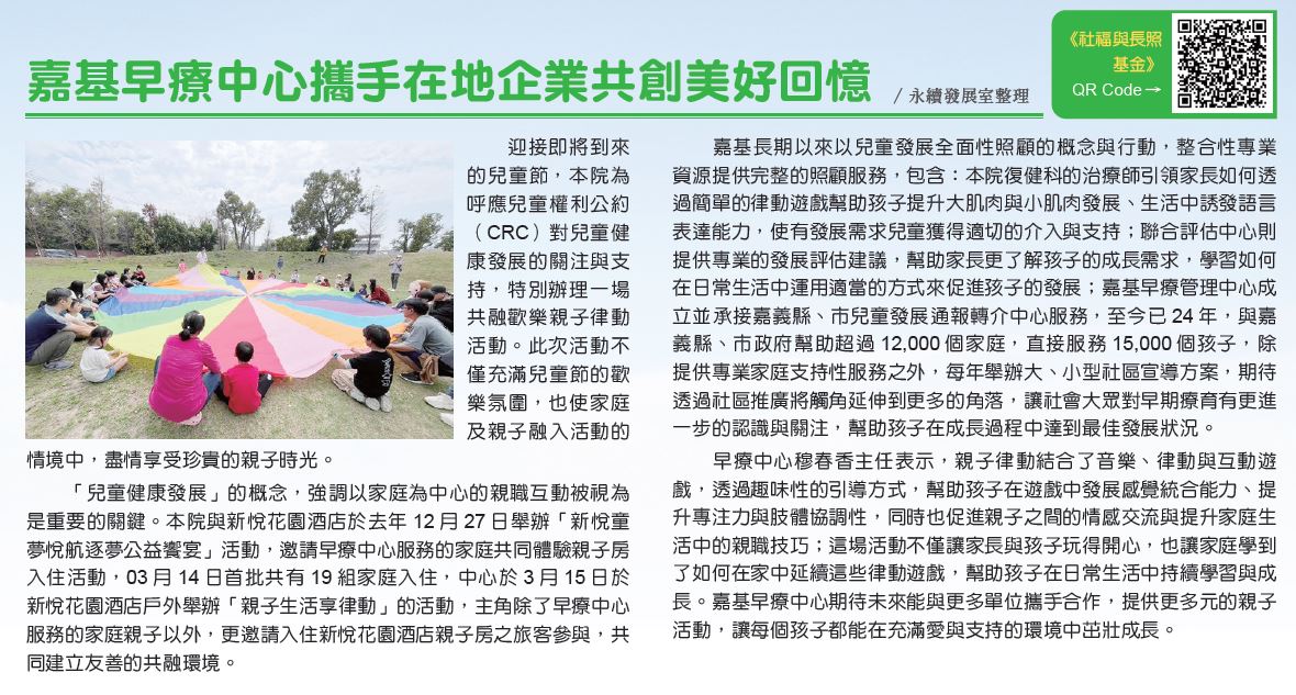 親子律動 x 兒童發展 嘉基早療中心攜手在地企業共創美好回憶
