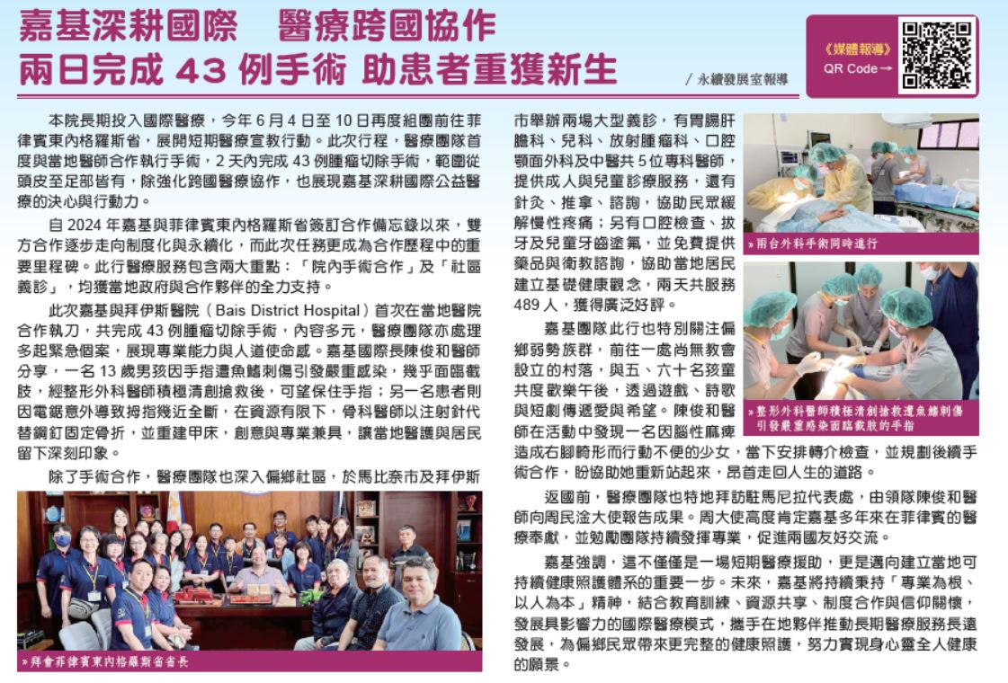 嘉基深耕國際醫療 跨國協作兩日完成43例手術 助患者重獲新生