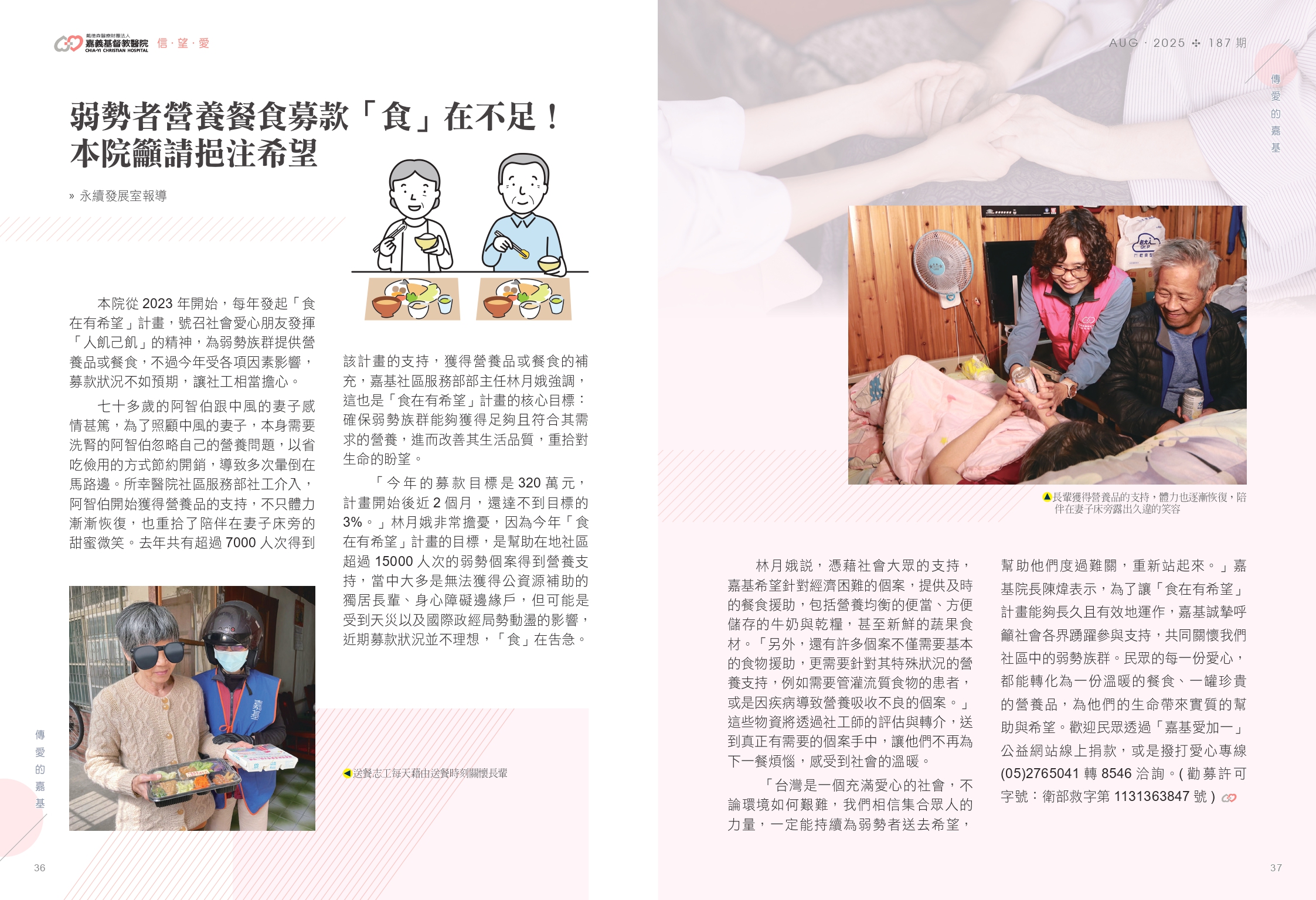 弱勢者營養餐食募款「食」在不足!嘉基籲請挹注希望