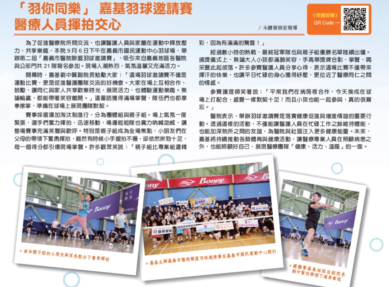 「羽你同樂」 嘉基羽球邀請賽 醫療人員揮拍交心