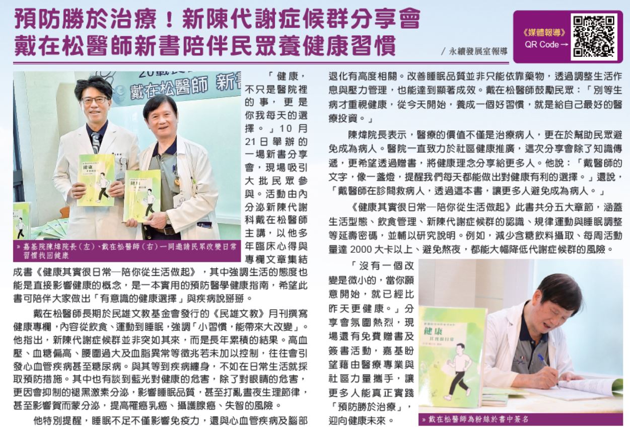 預防勝於治療!新陳代謝症候群分享會 戴在松醫師新書陪伴民眾養健康習慣