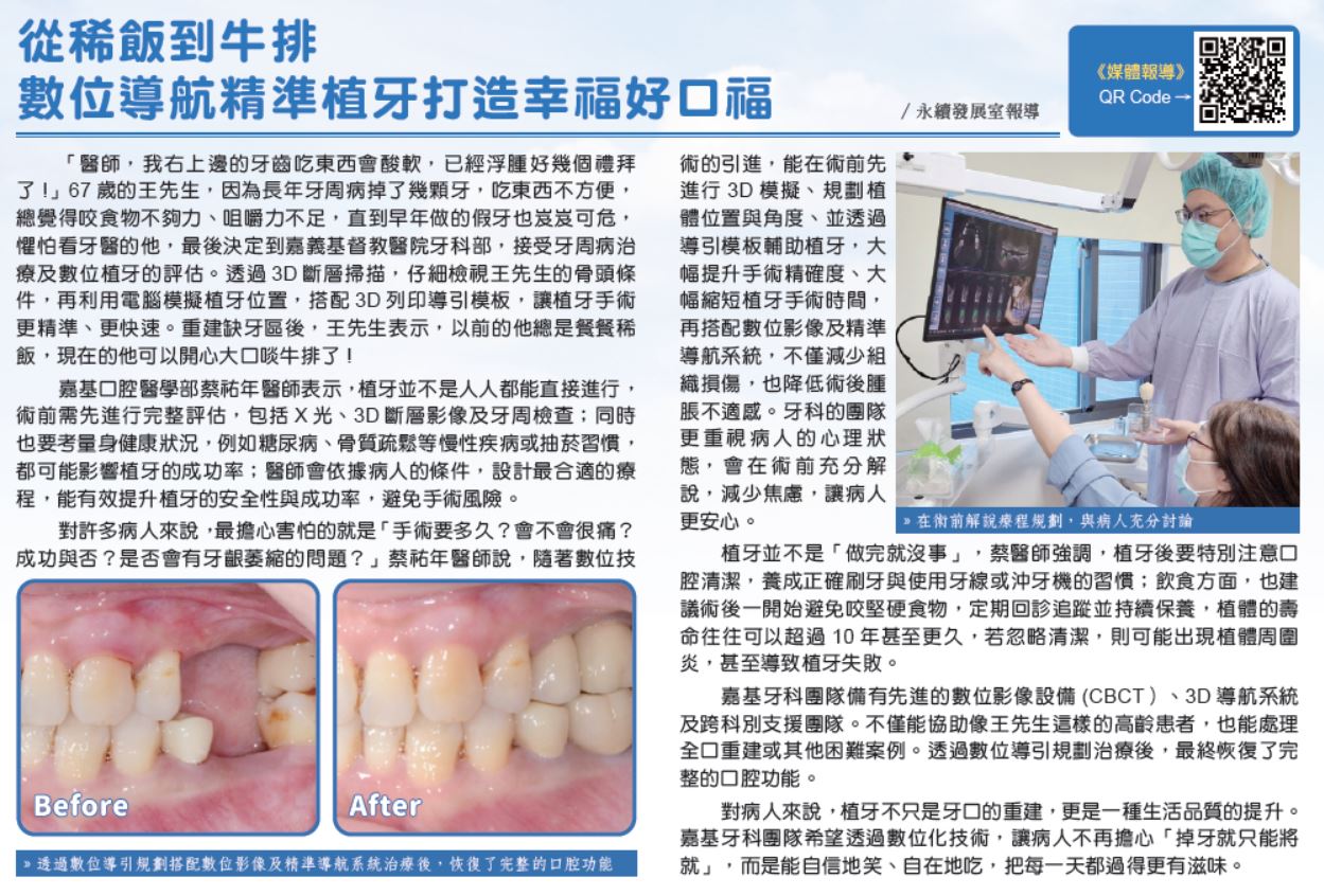 從稀飯到牛排 嘉基數位導航精準植牙打造幸福好口福