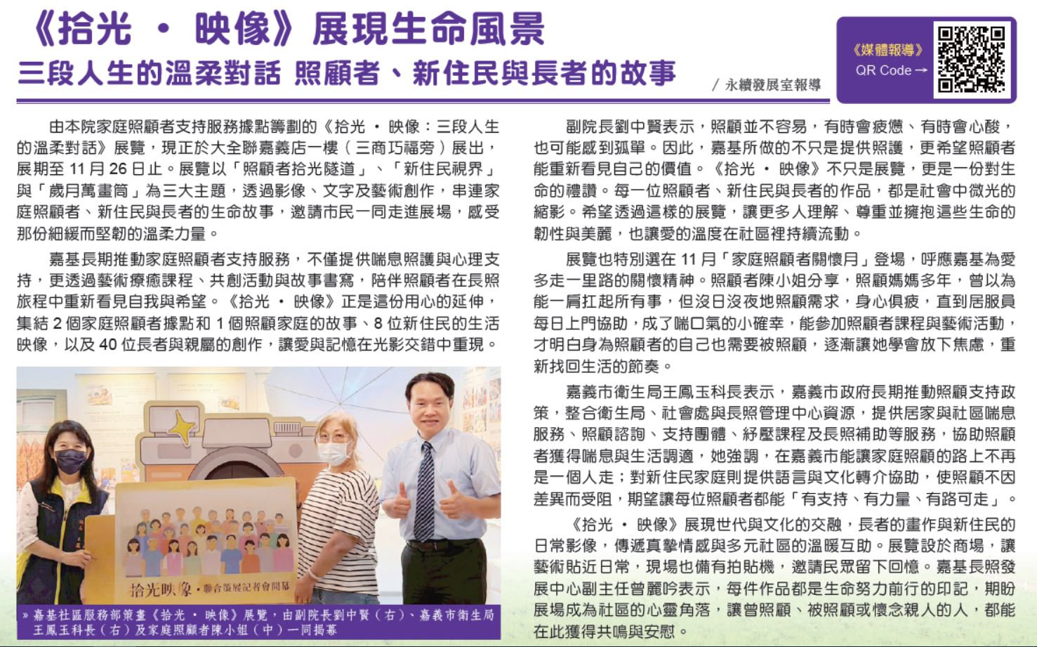 嘉基舉辦《拾光‧映像》展 以影像與藝術述說照顧者生命故事