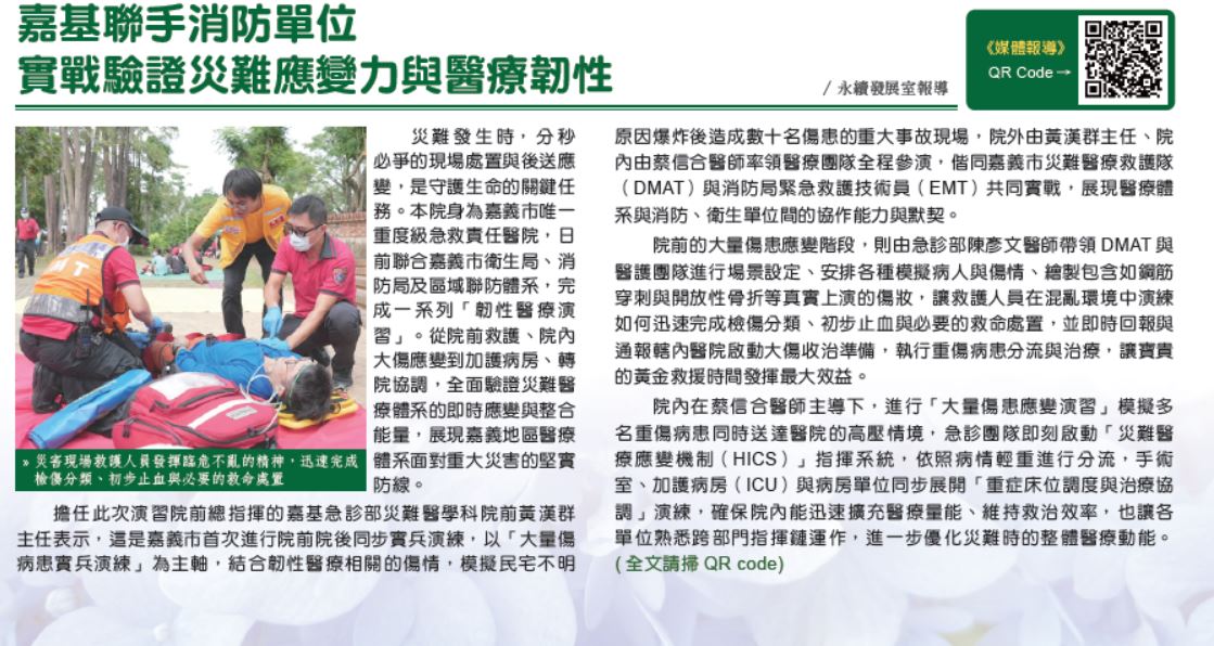 嘉基聯手消防單位 實戰驗證災難應變力與醫療韌性