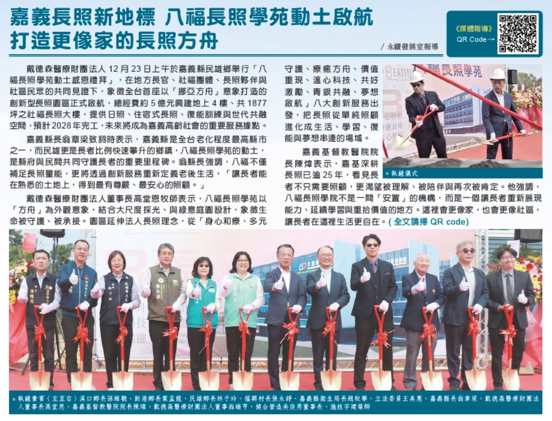 嘉義長照新地標 八福長照學苑動土啟航 打造更像家的長照方舟