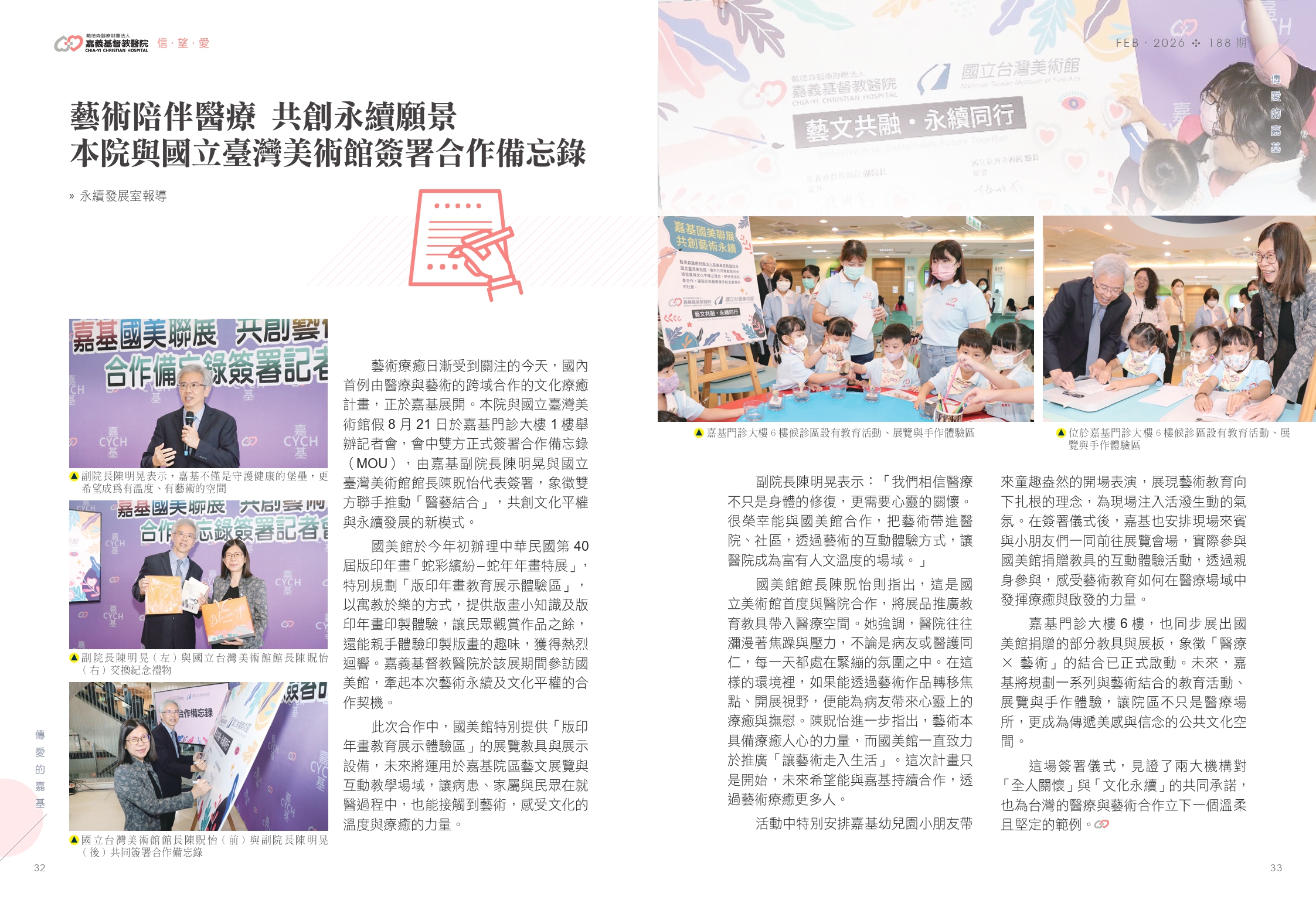 藝術陪伴醫療 共創永續願景 嘉基與國立臺灣美術館簽署合作備忘錄