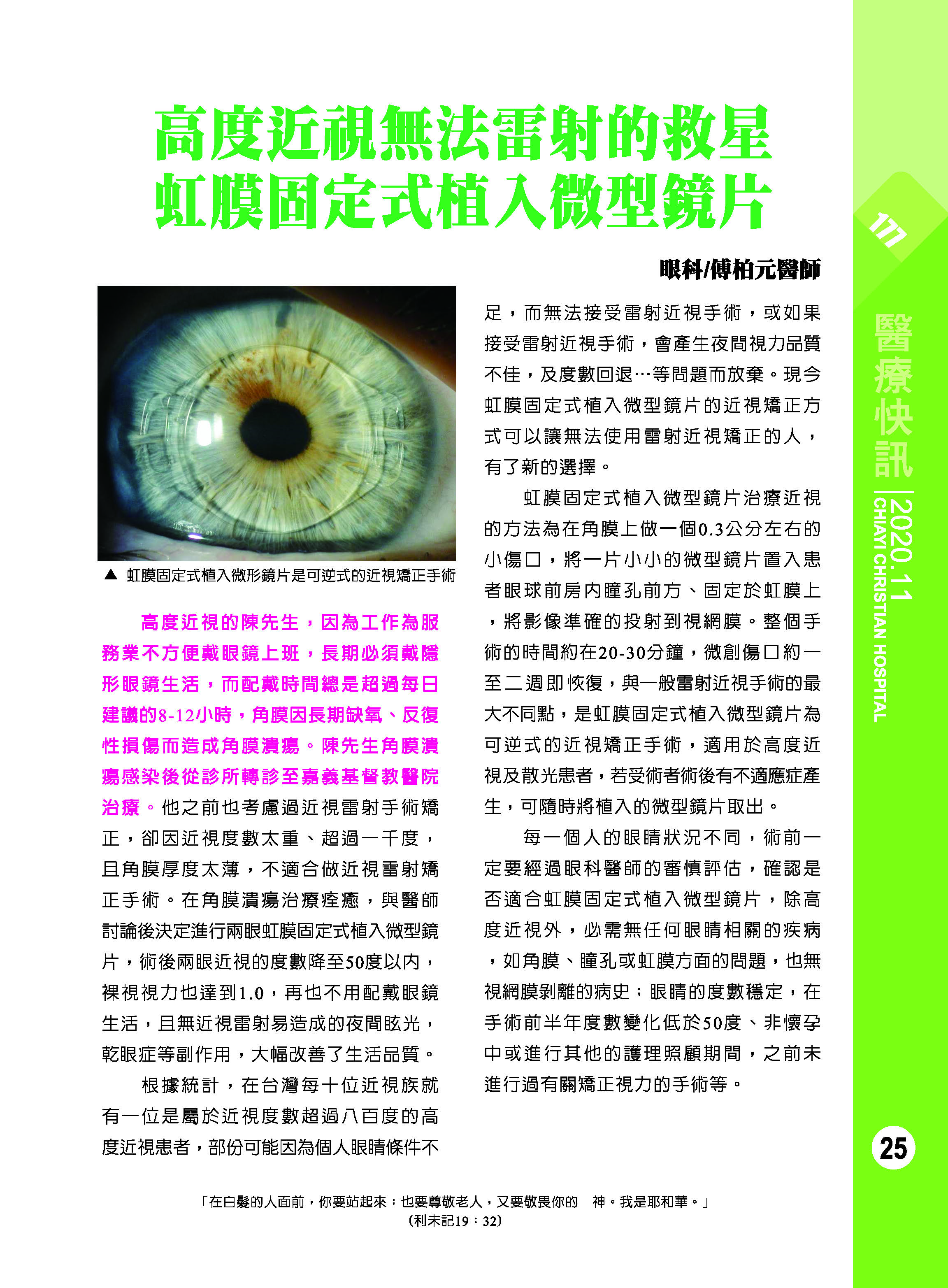 高度近視無法雷射的救星 虹膜固定式植入微形鏡片