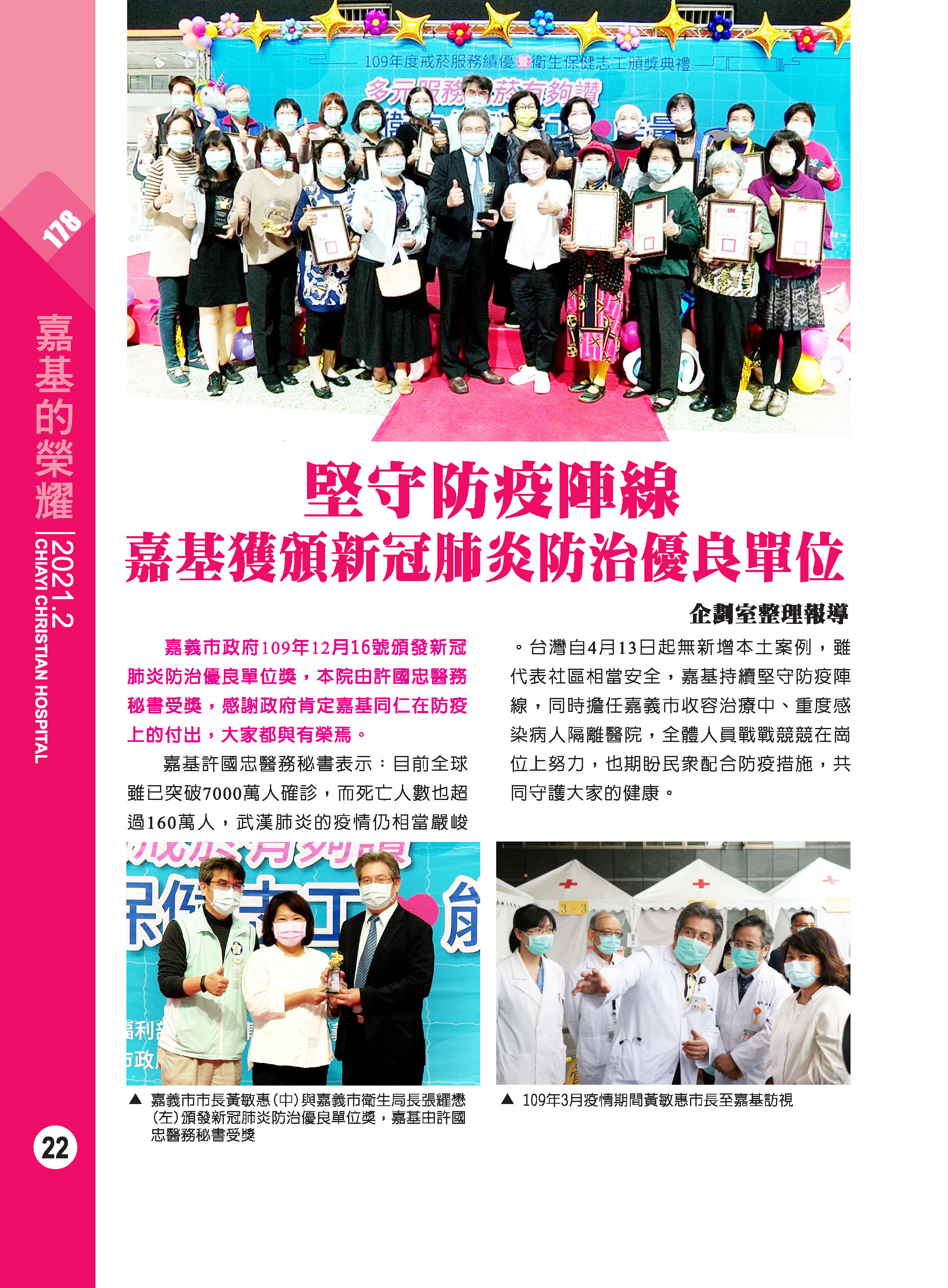 堅守防疫陣線 嘉基獲頒新冠肺炎防治優良單位