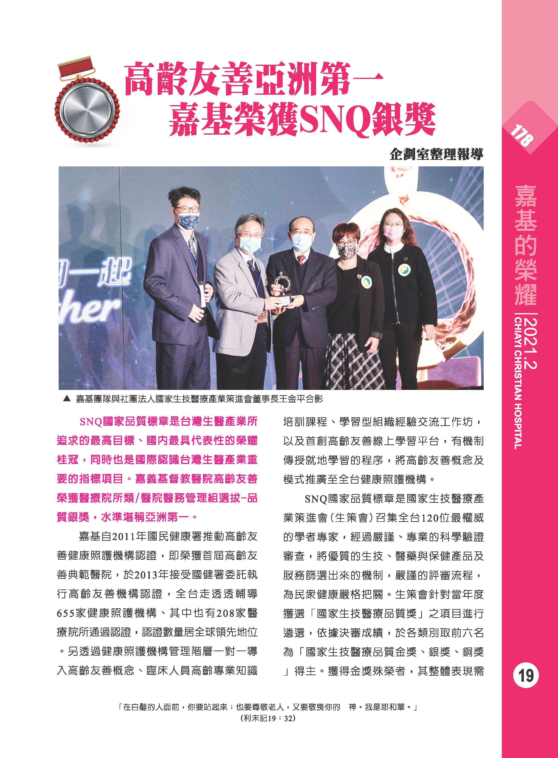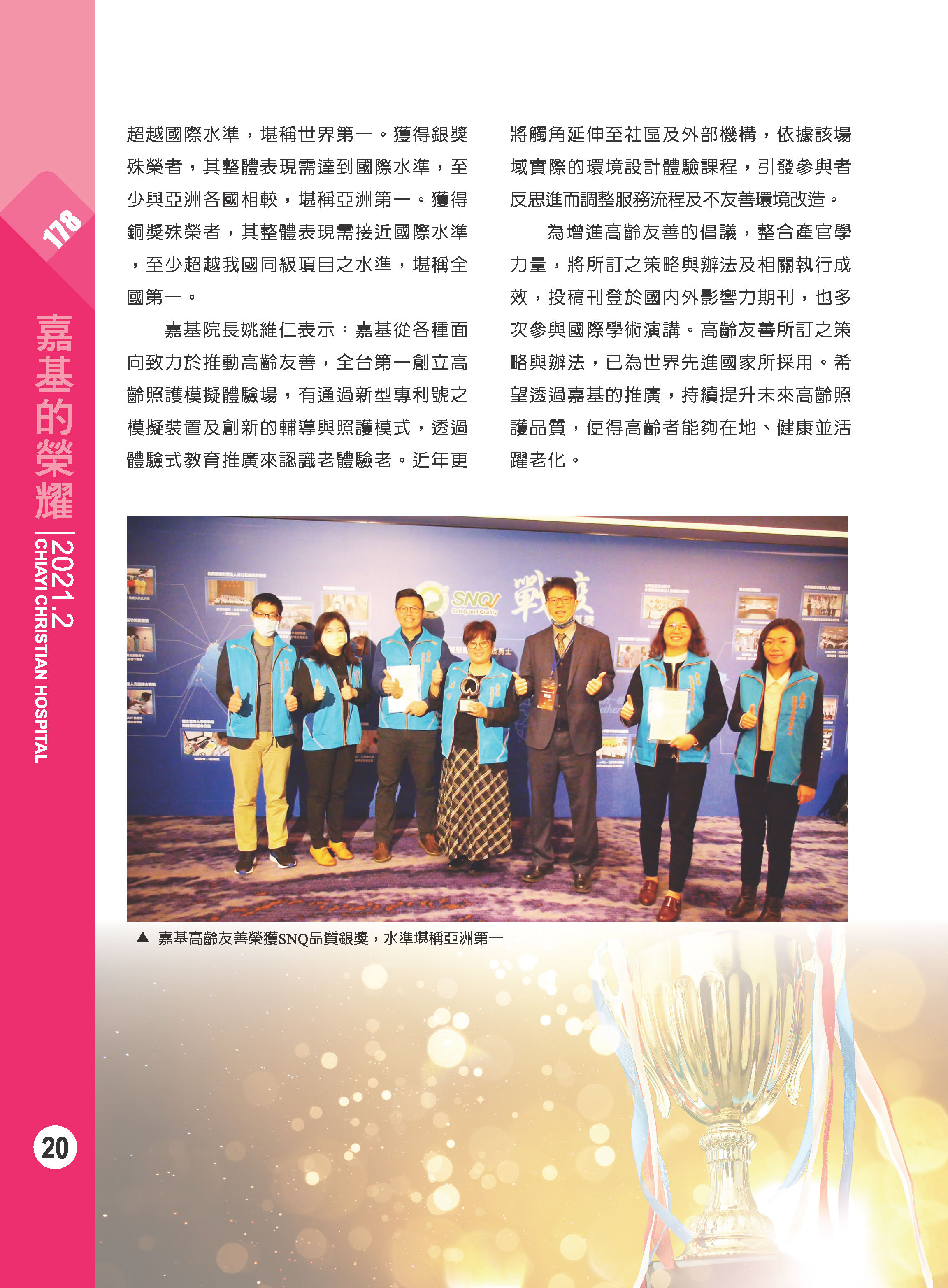 高齡友善亞洲第一 嘉基榮獲SNQ銀獎