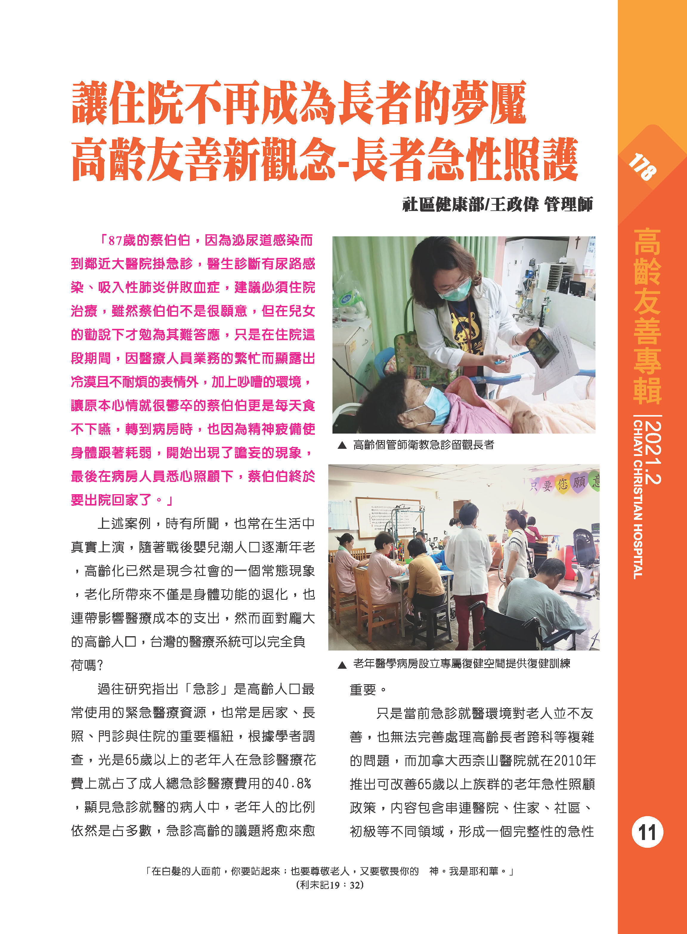 讓住院不再成為長者的夢靨 高齡友善新觀念-長者急性照護