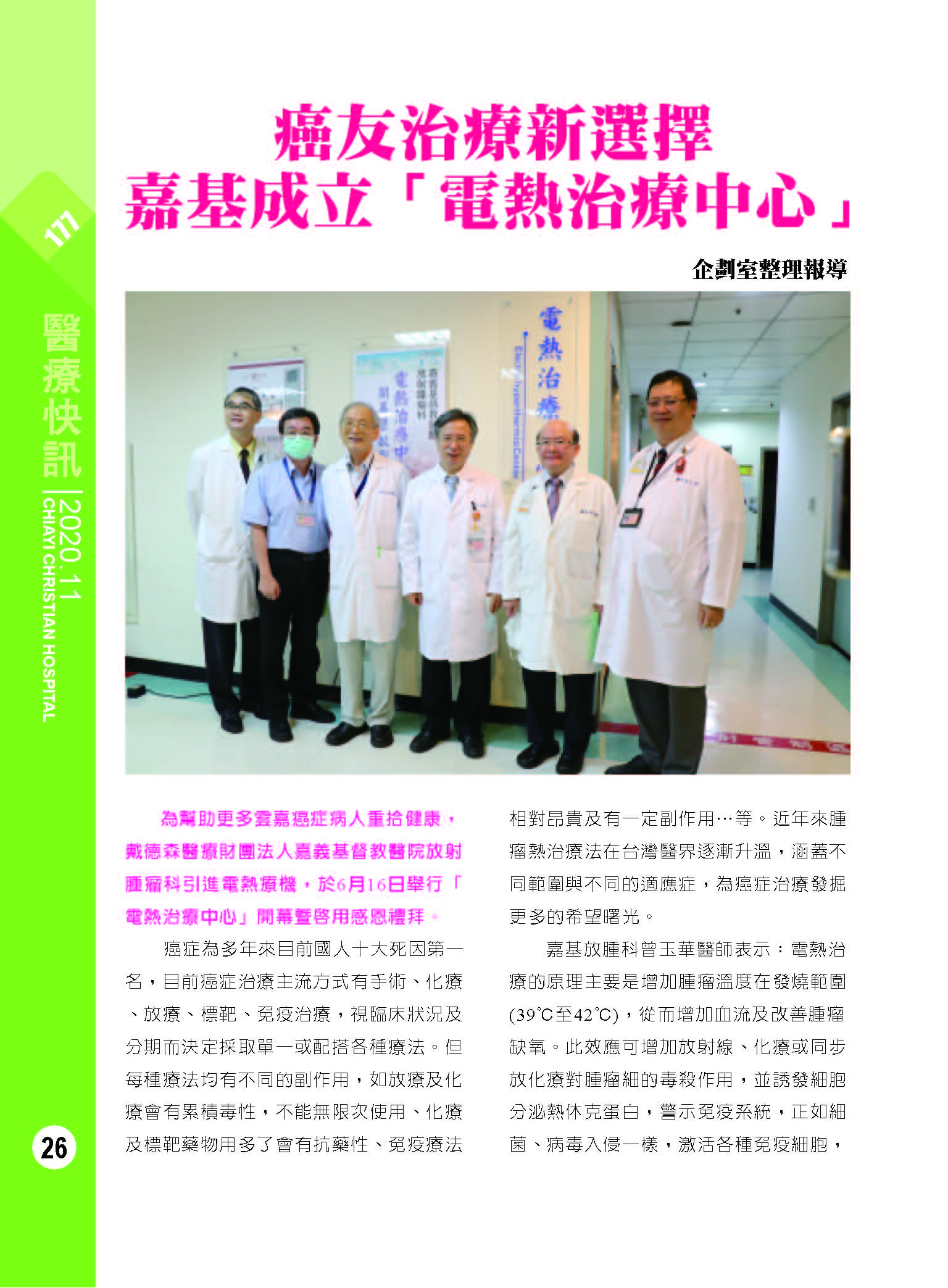 癌友治療新選擇-嘉基成立「電熱治療中心」
