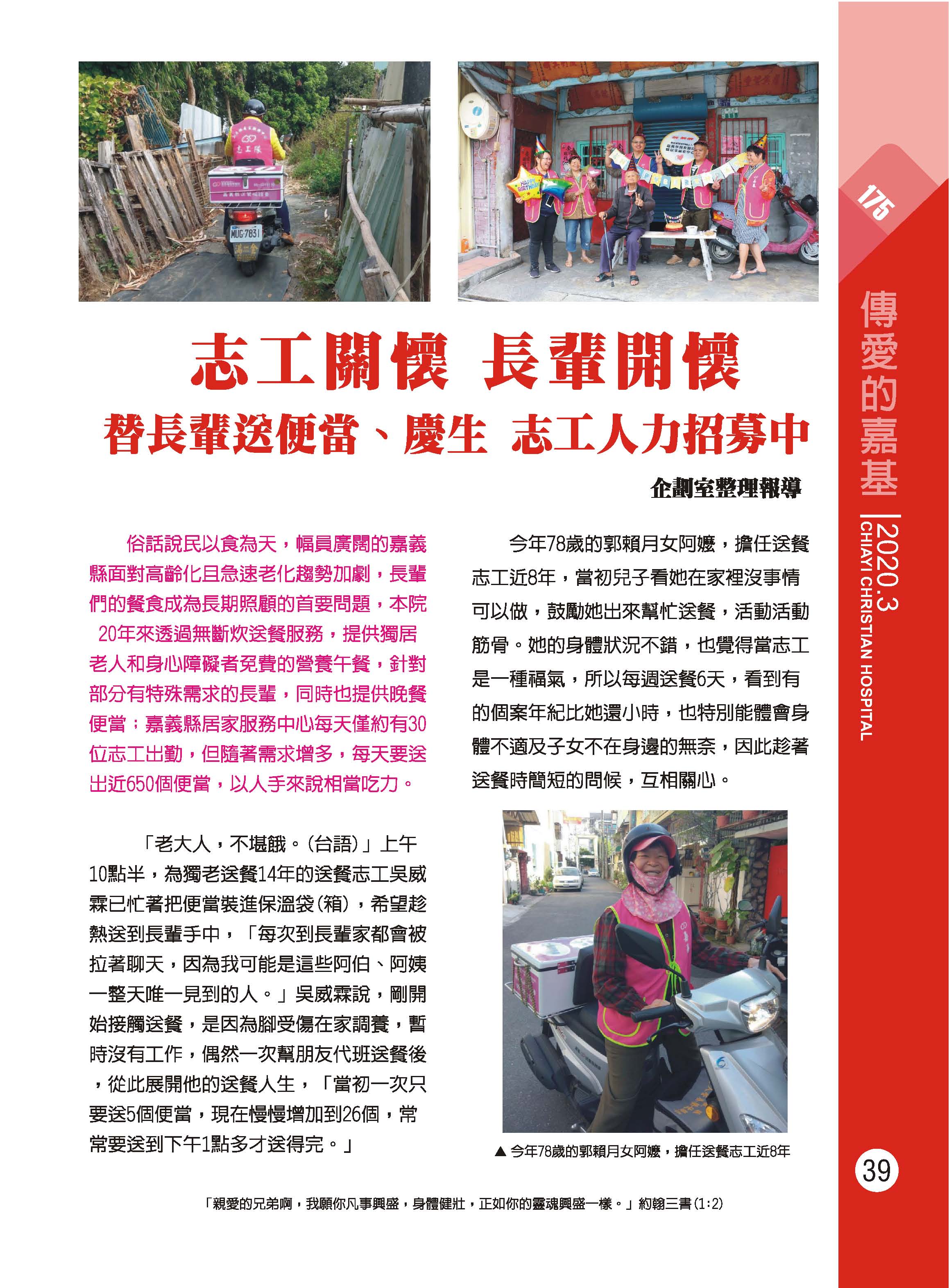 志工關懷 長輩開懷 替長輩送便當、慶生 志工人力招募中