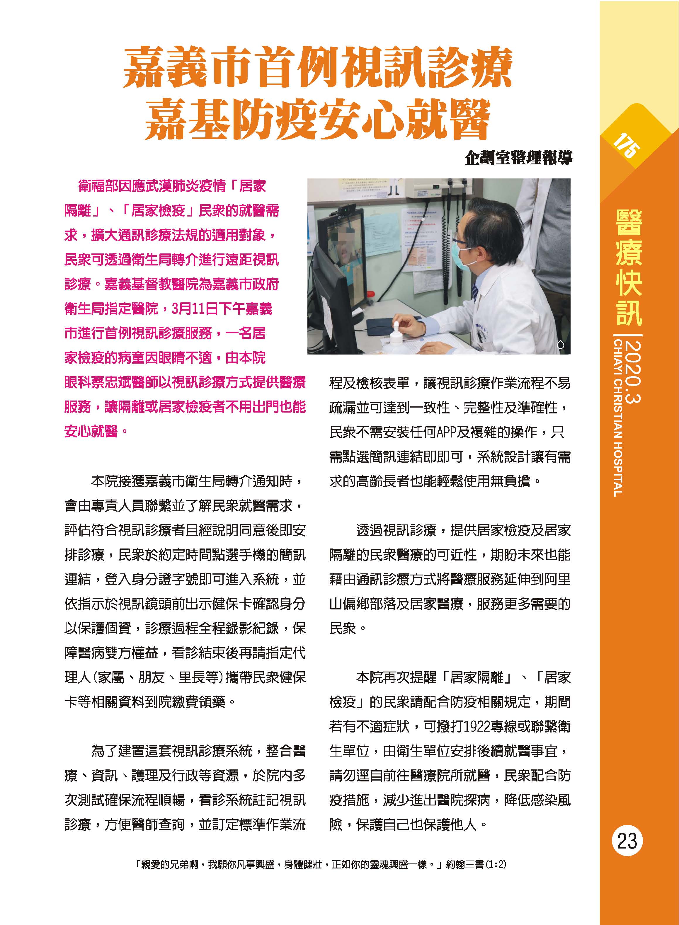 嘉義市首例視訊診療 嘉基防疫安心就醫
