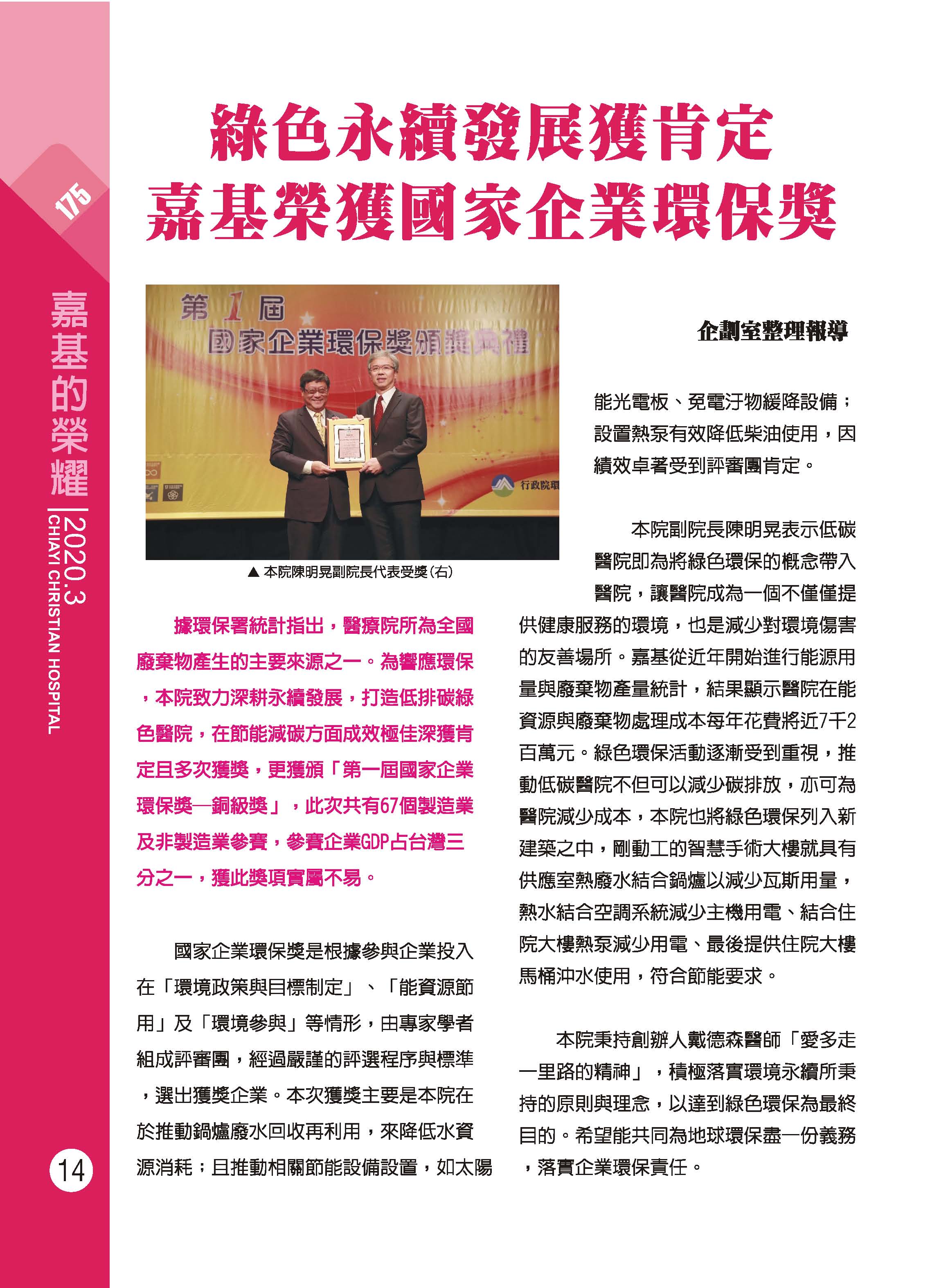綠色永續發展獲肯定 嘉基榮獲國家企業環保獎