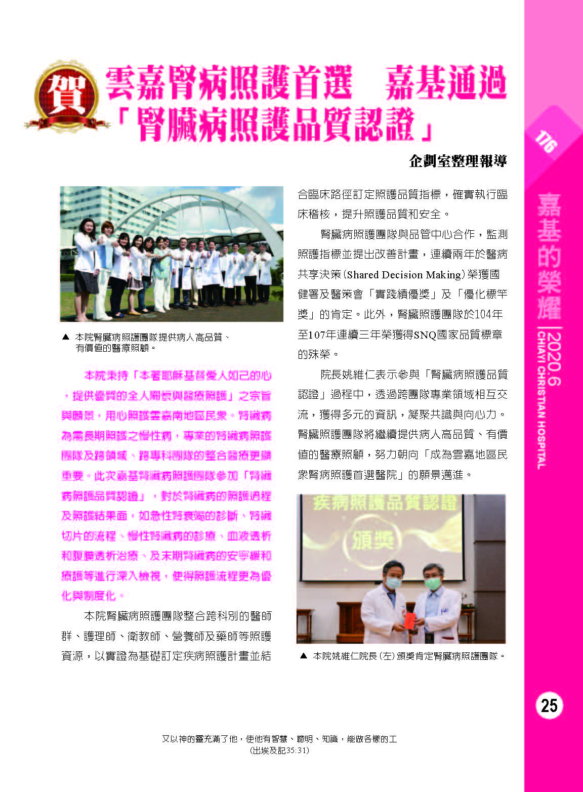 雲嘉腎臟病照護首選 嘉基通過「腎臟病照護品質認證」