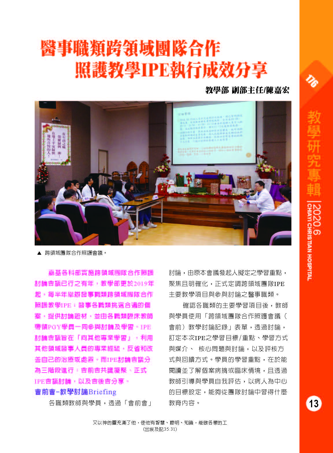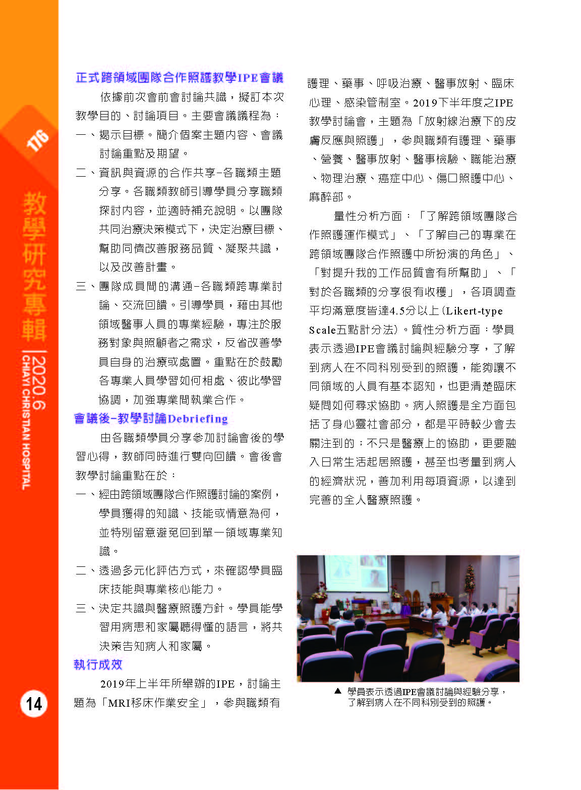 醫事職類跨領域團隊合作 照護教學IPE執行成效分享