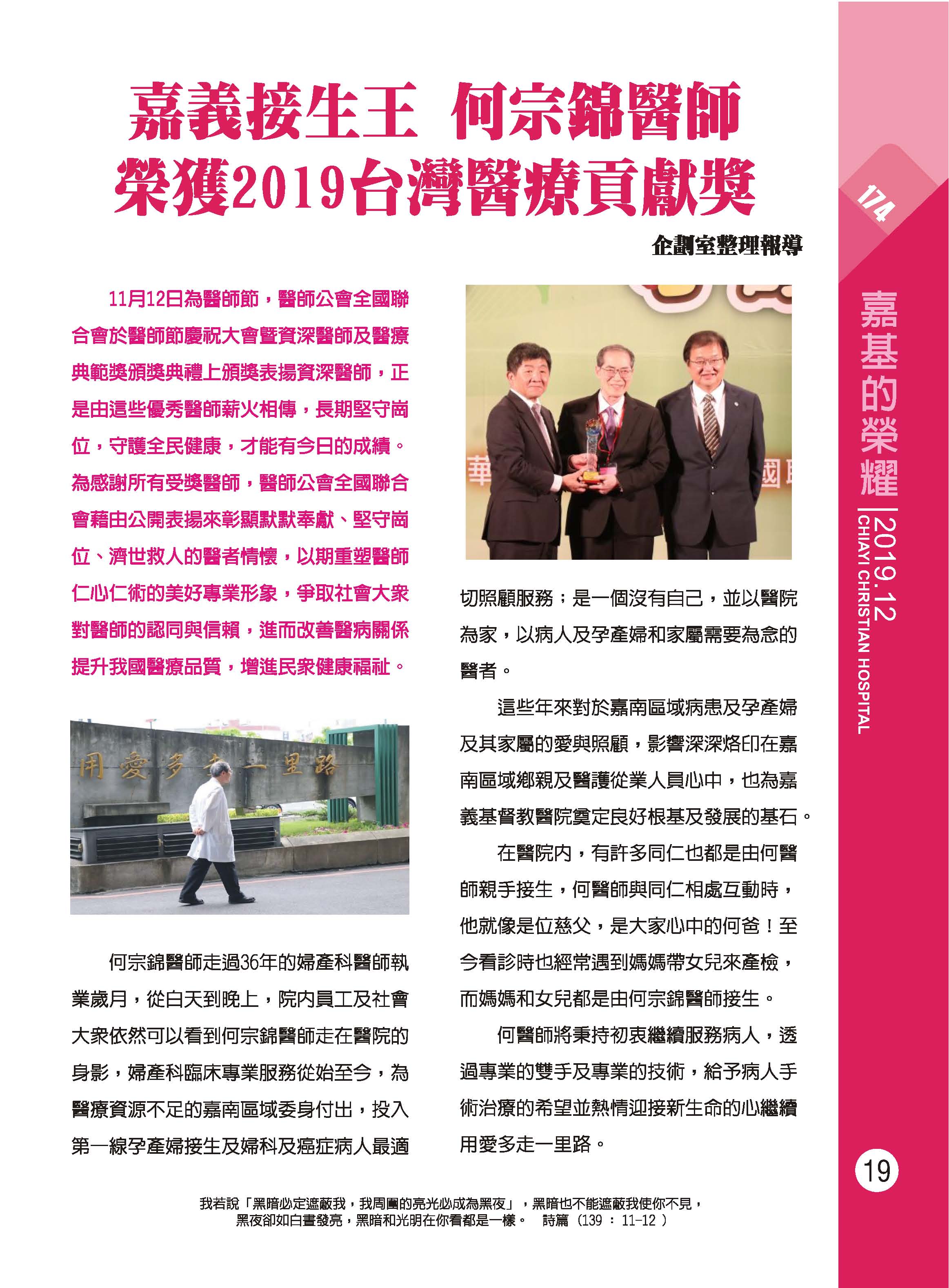 嘉義接生王 何宗錦醫師 榮獲2019台灣醫療貢獻獎