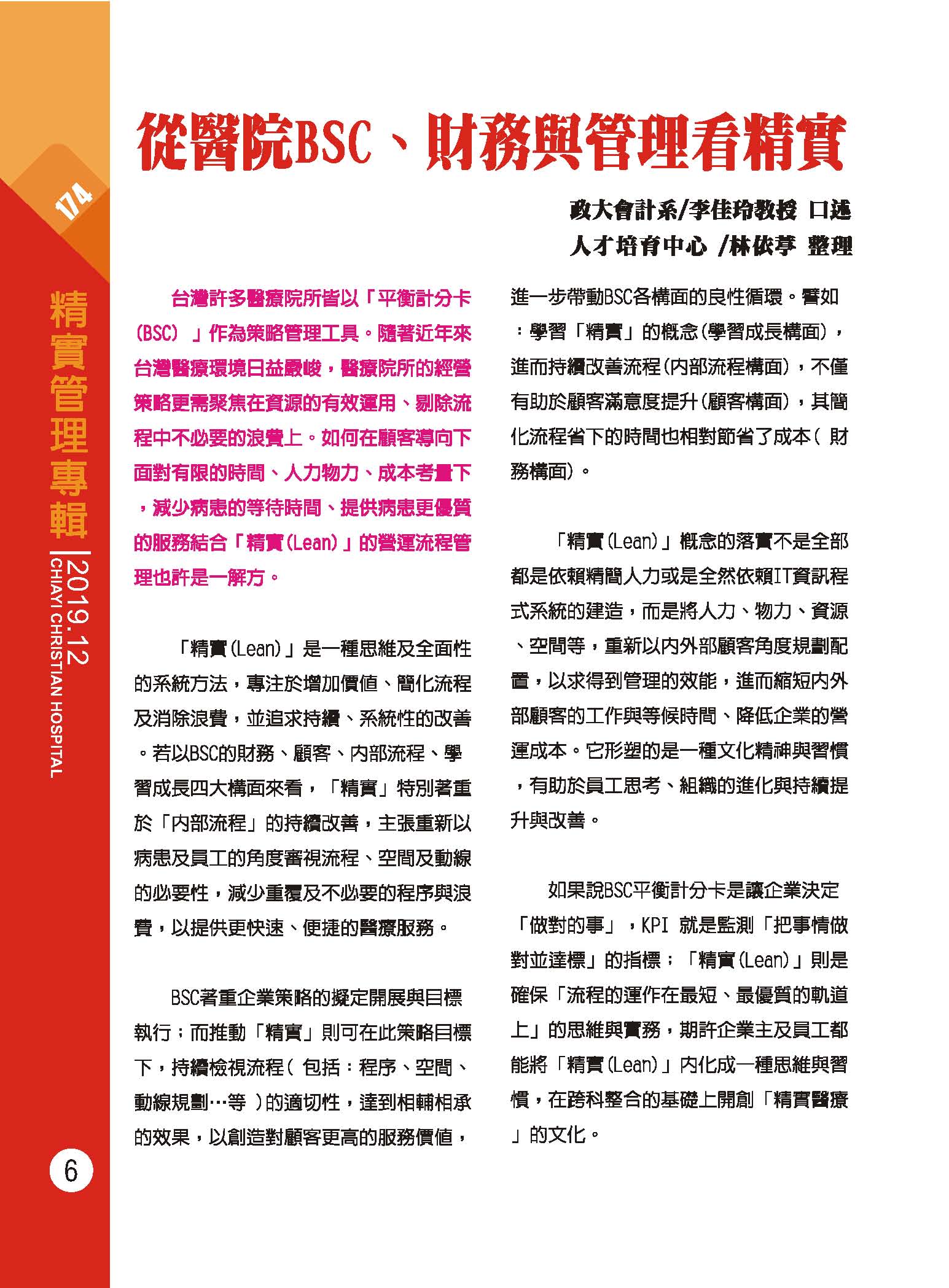 從醫院BSC、財務與管理看精實