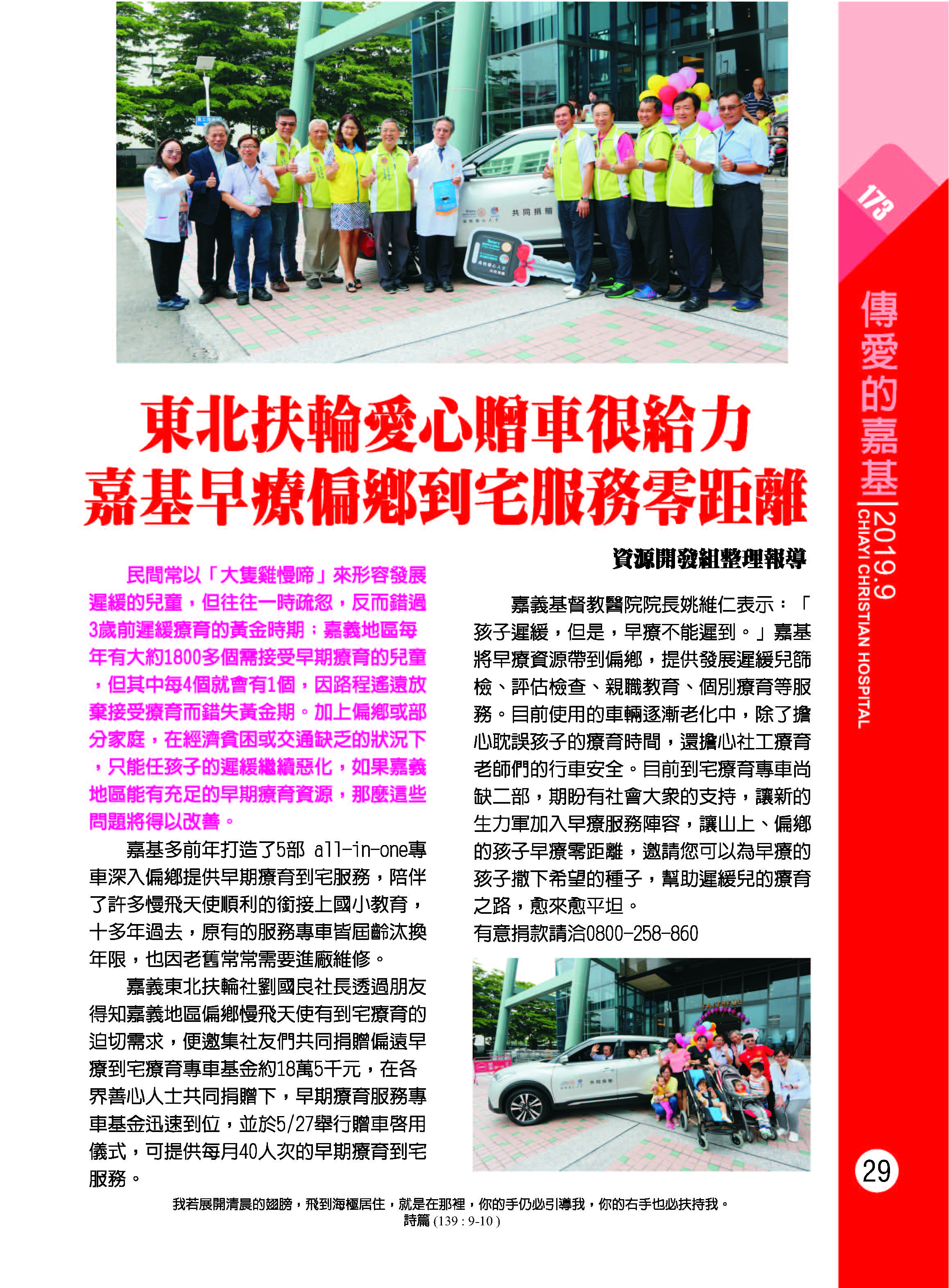 東北扶輪愛心贈車很給力 嘉基早療偏鄉到宅服務零距離