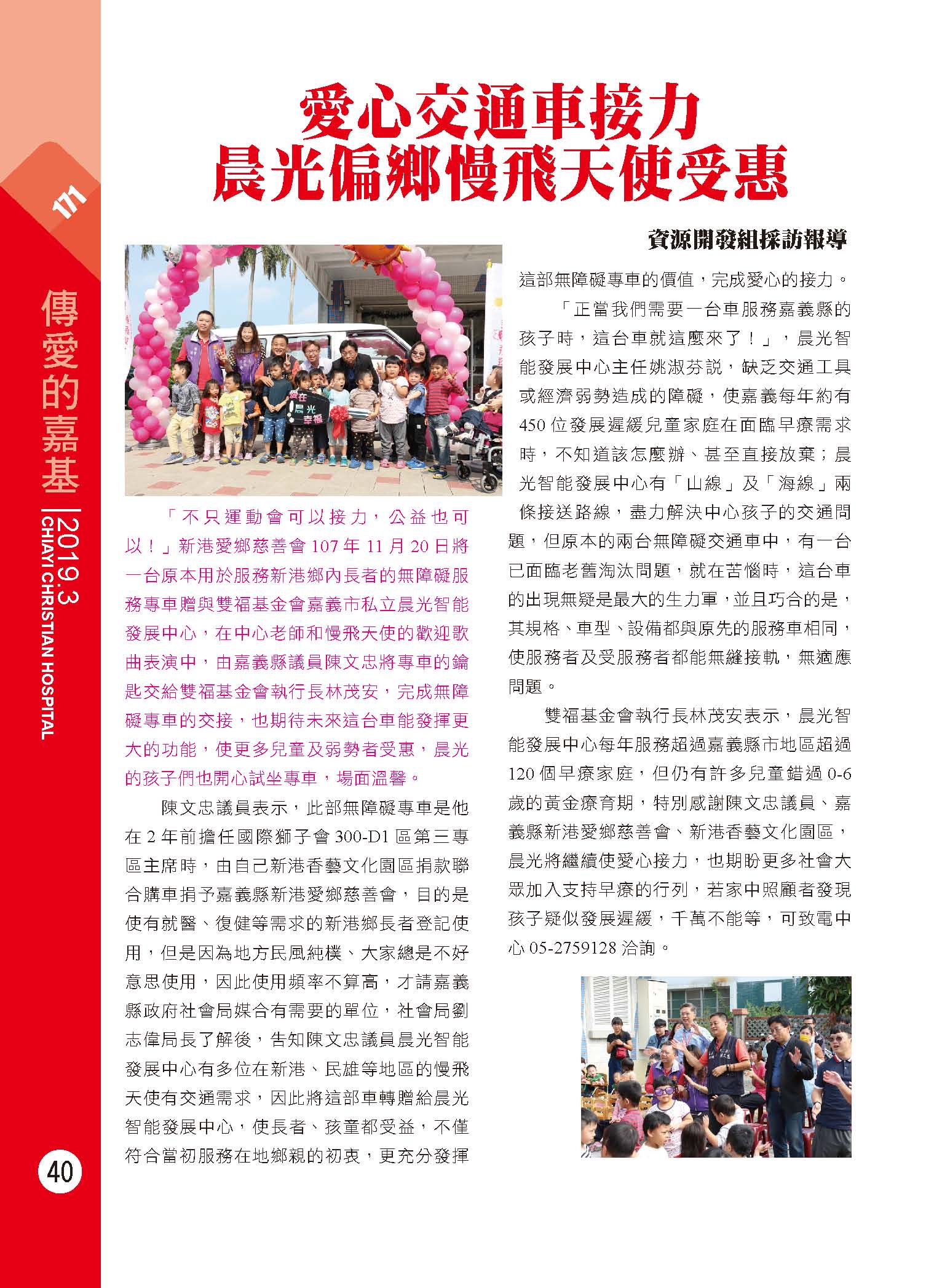 愛欣交通車接力 晨光偏鄉慢飛天使受惠