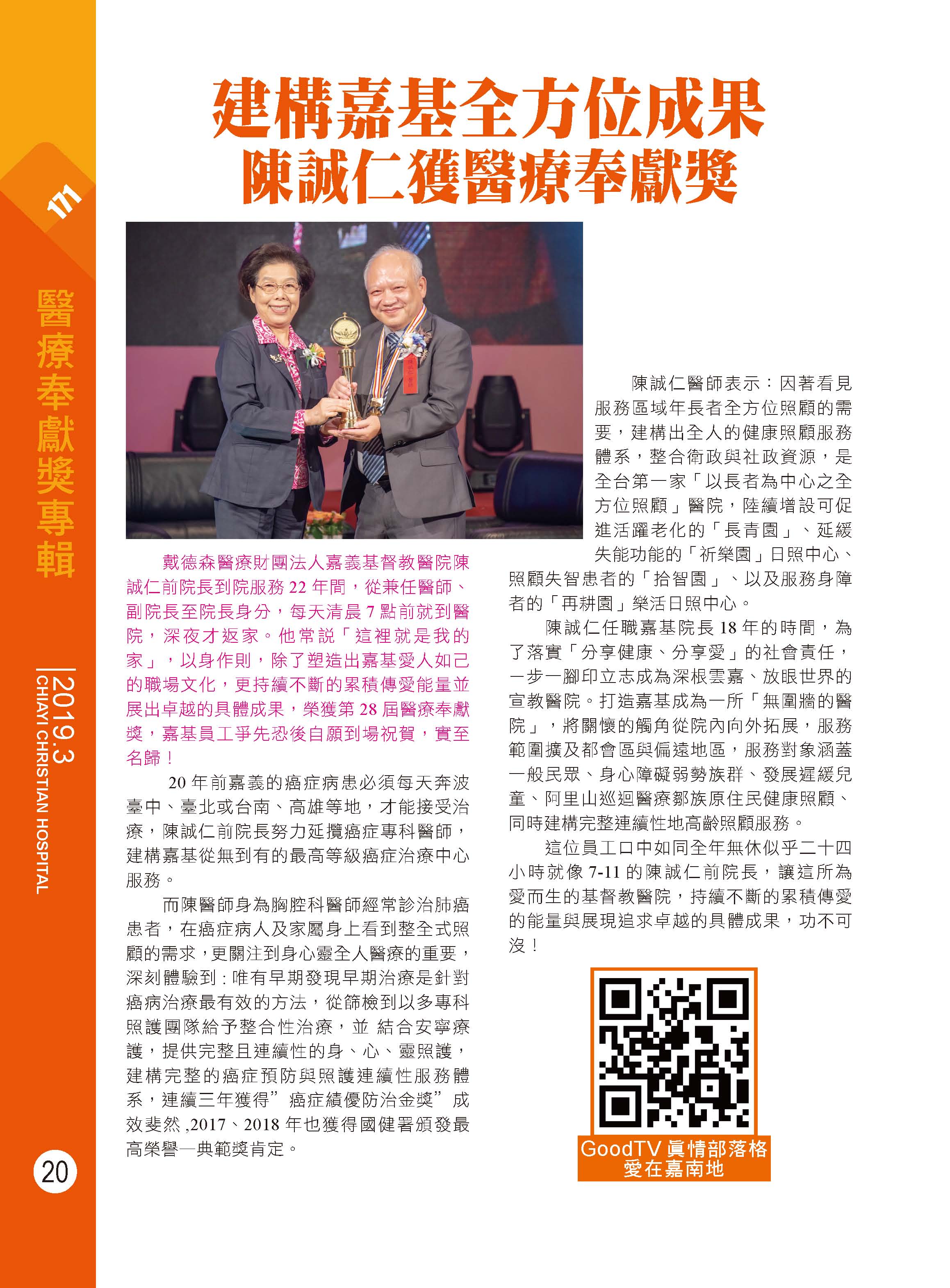 建構嘉基全方位成果 陳誠仁獲醫療奉獻獎