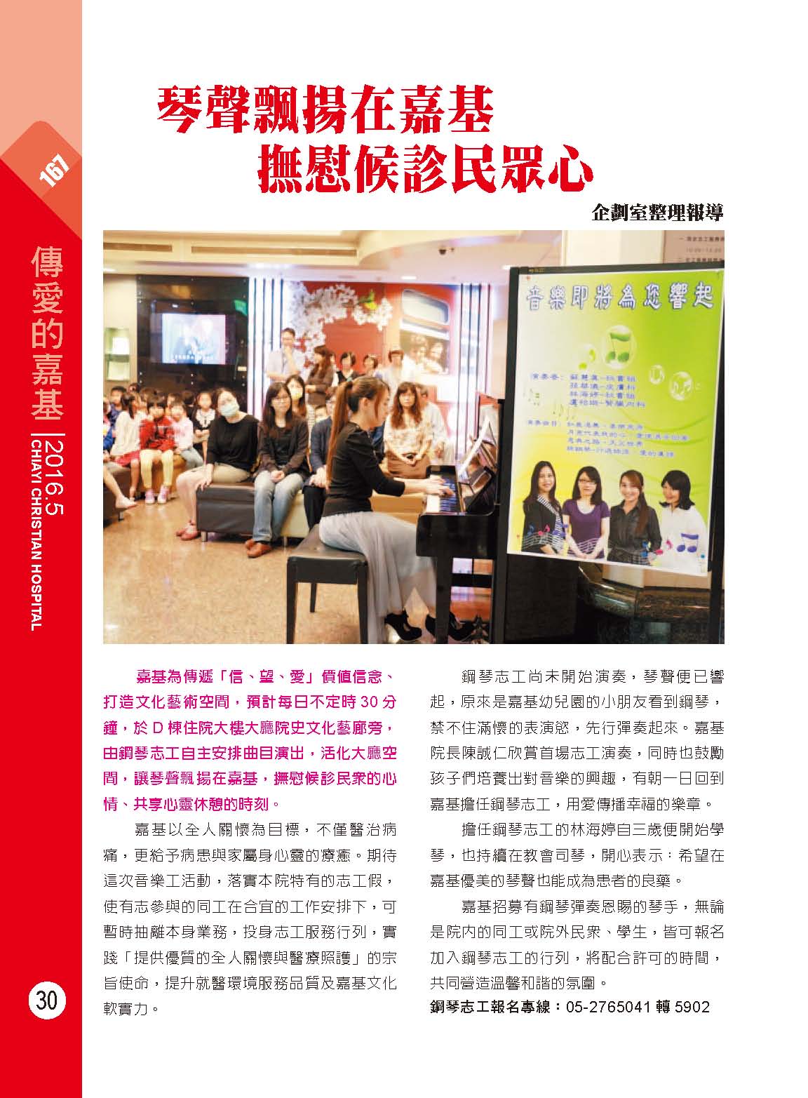 琴聲飄揚在嘉基 撫慰候診民眾心