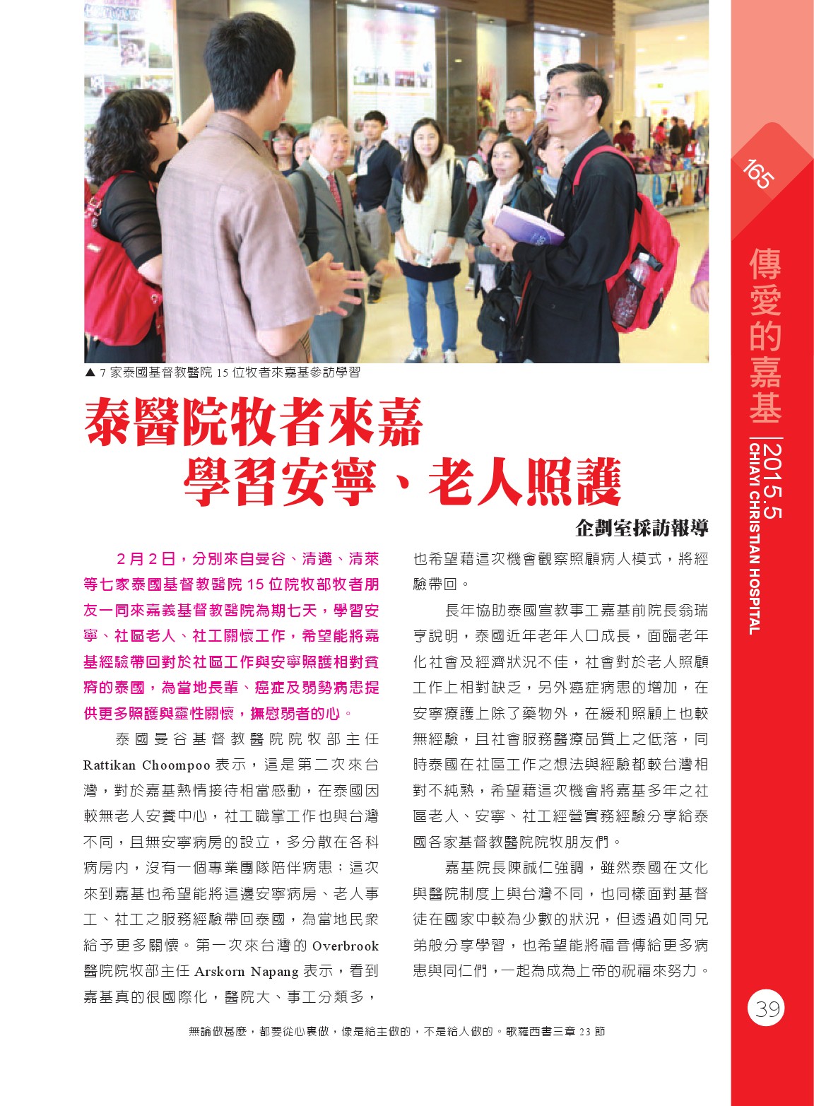 泰醫院牧者來嘉 學習安寧、老人照護
