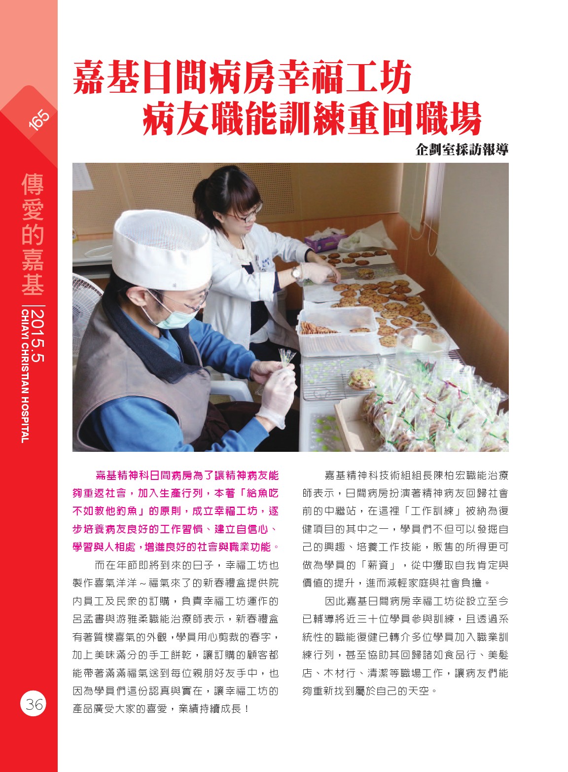 嘉基日間病房幸福工坊 病友職能訓練重回職場