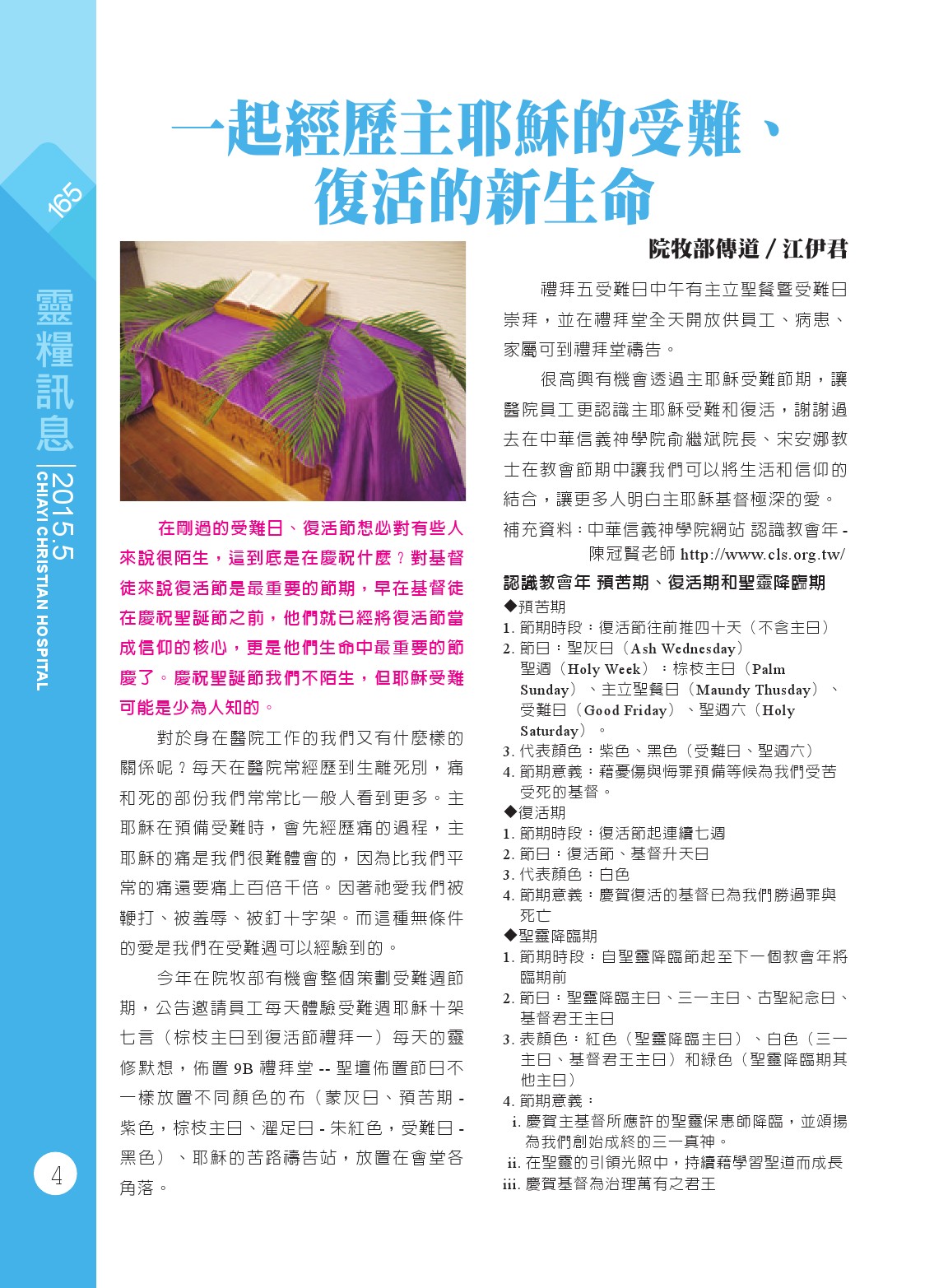 一起經歷主耶穌的受難、復活的新生命