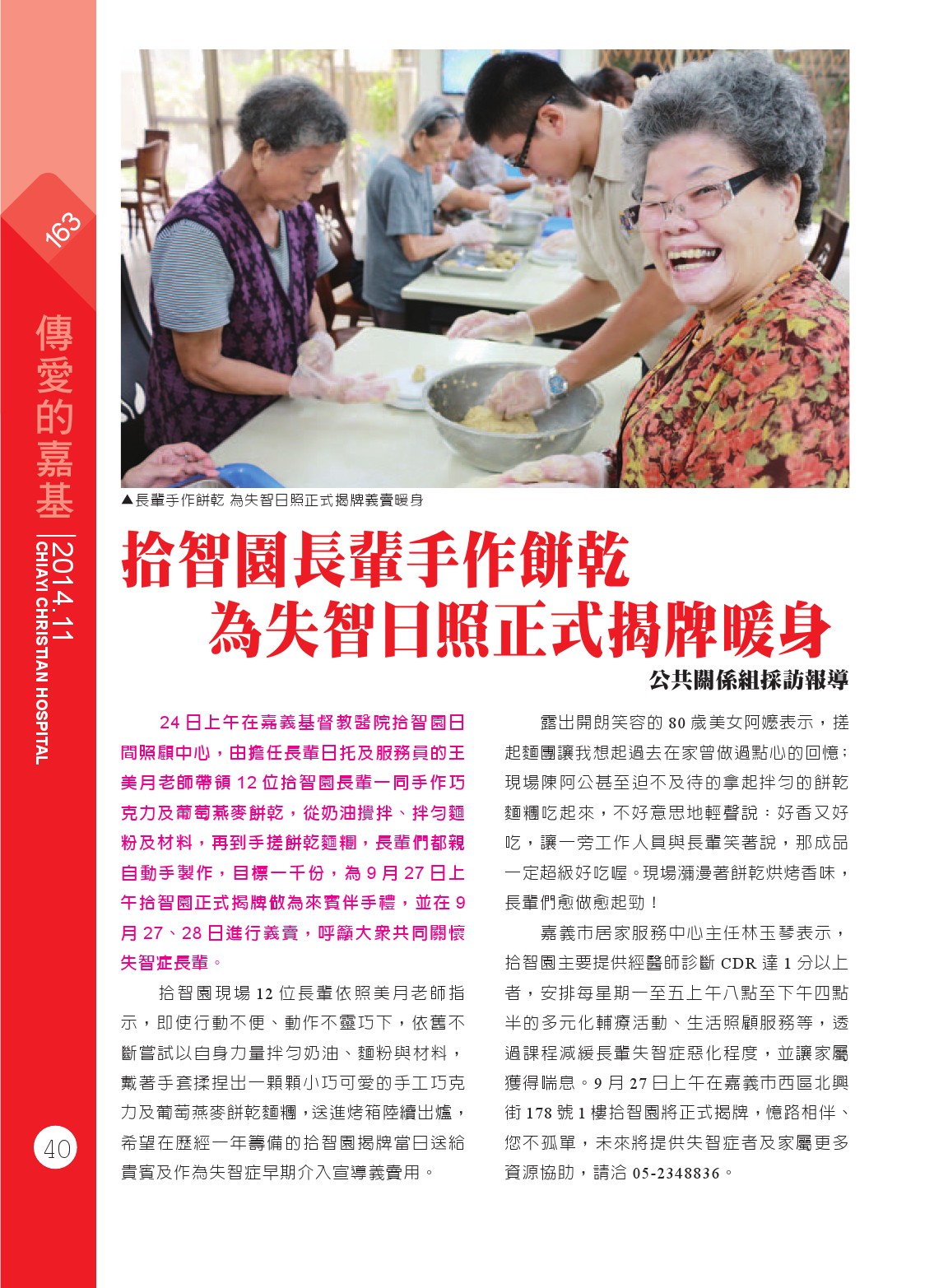 拾智園長輩手作餅乾 為失智日照正式揭牌暖身