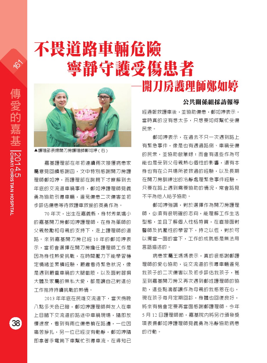 不畏道路車輛危險 寧靜守護受傷患者-開刀房護理師鄭如婷