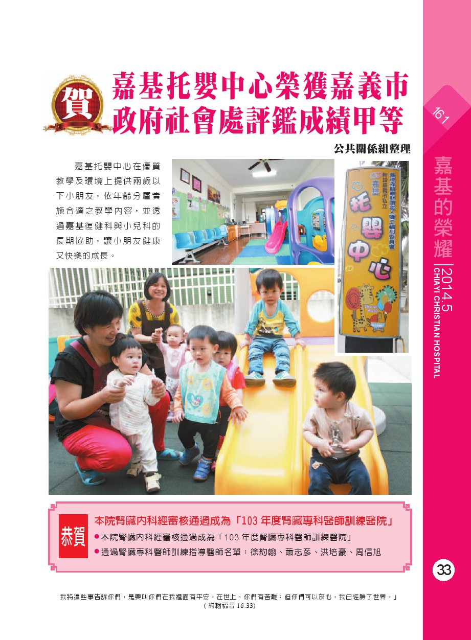 賀 嘉基托嬰中心榮獲嘉義市政府社會處評鑑成績甲等