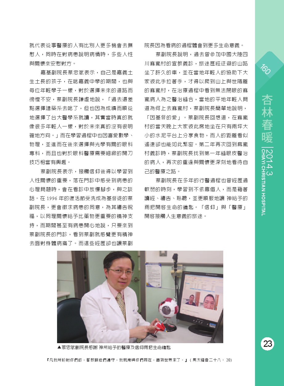 順服 神所給予的兩把生命鑰匙 信仰、醫療 - 蔡忠斌副院長