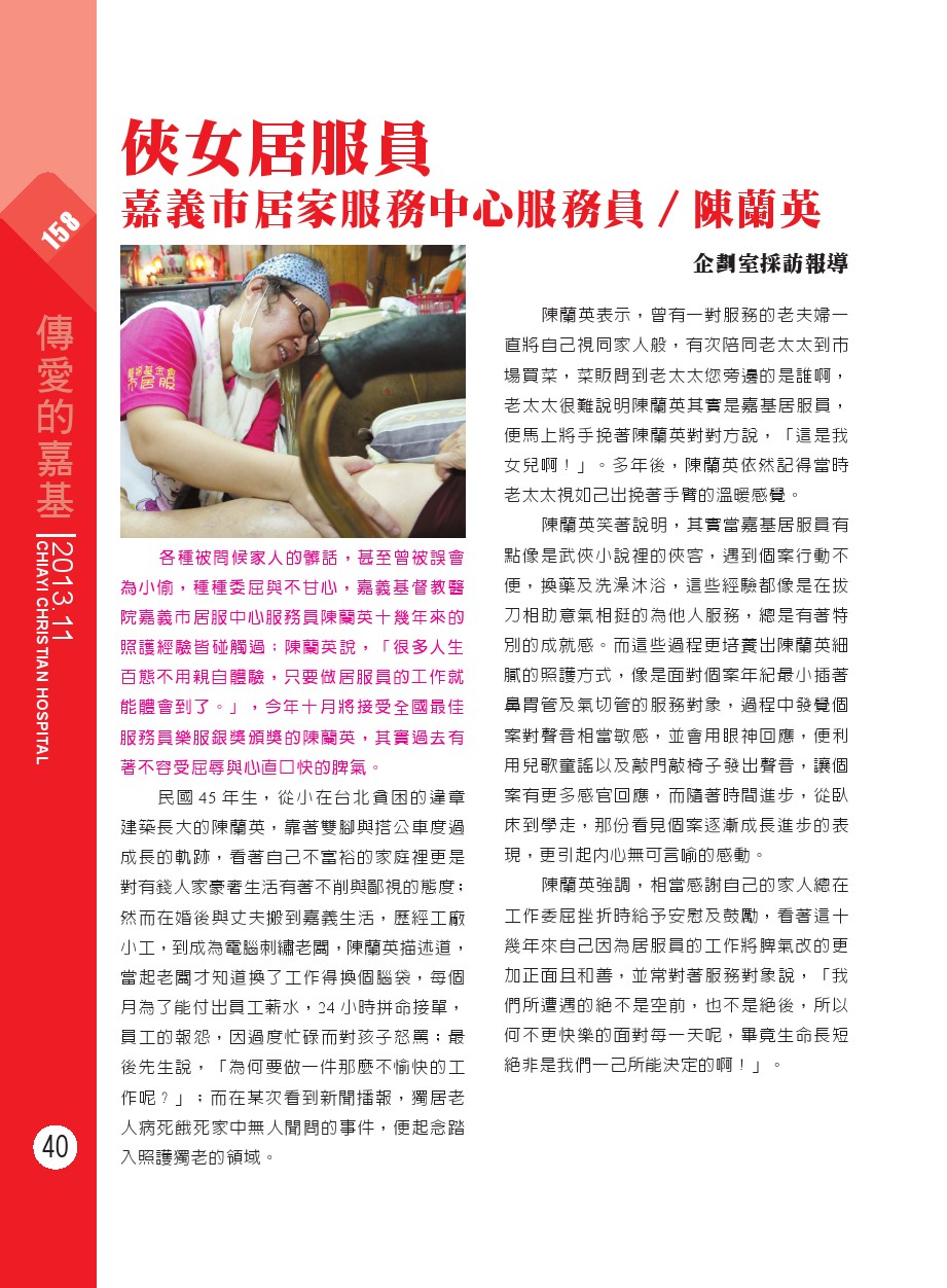 嘉義基督教醫院嘉義市居家服務中心服務員 陳蘭英