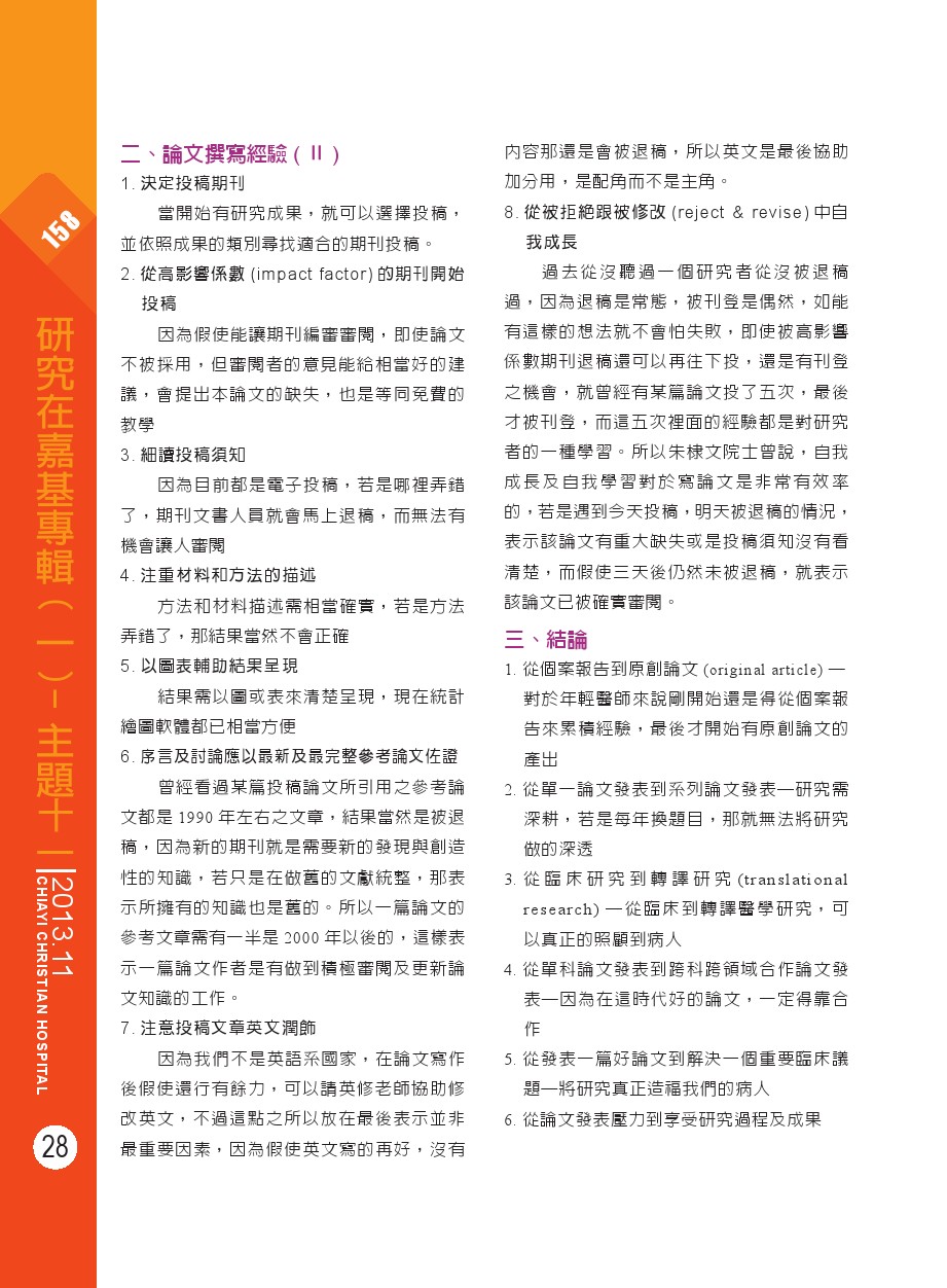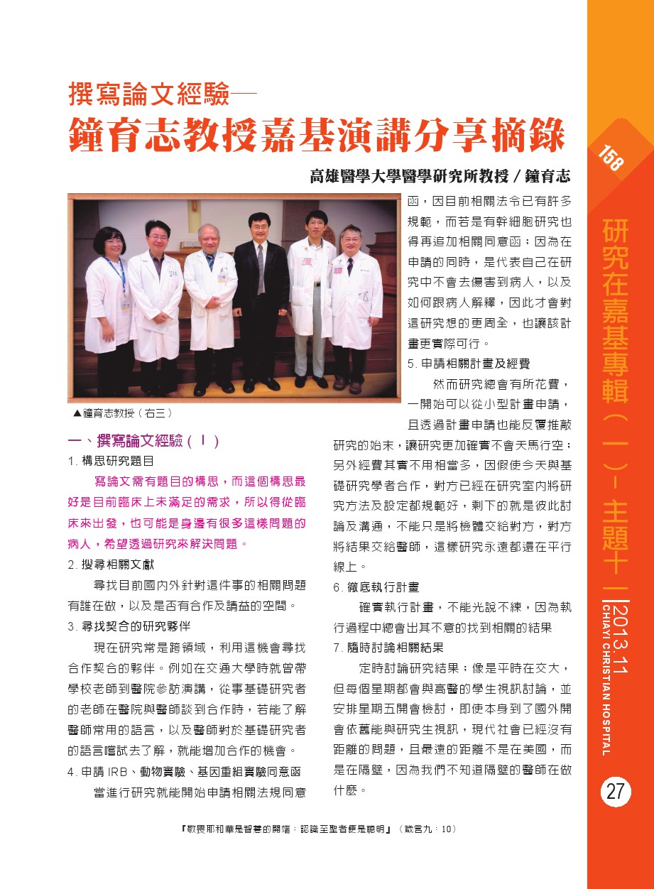撰寫論文經驗-鐘育志教授嘉基演講分享摘錄