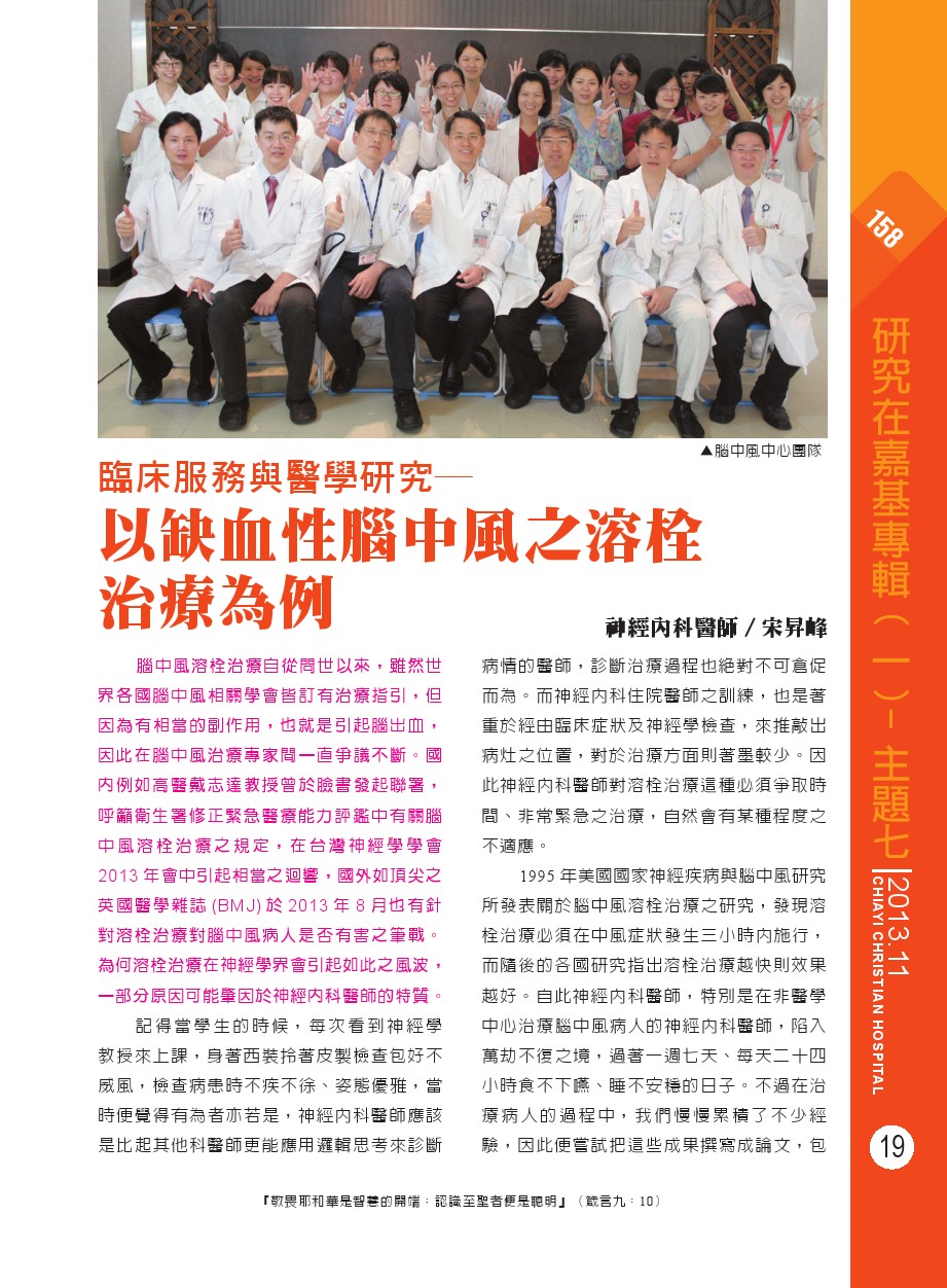 臨床服務與醫學研究 – 以缺血性腦中風之溶栓治療為例