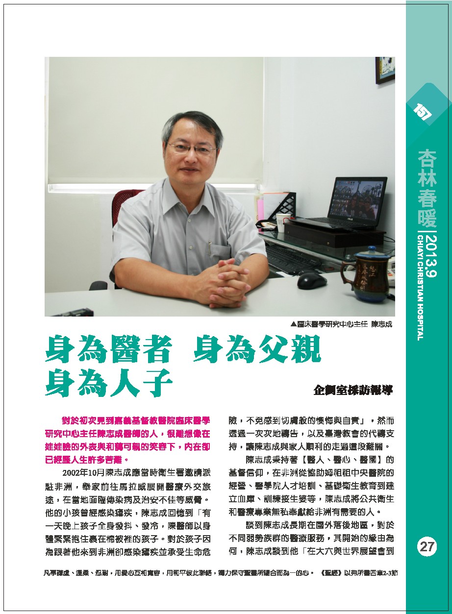 身為醫者 身為父親 身為人子 ~臨床醫學研究中心/陳志成主任